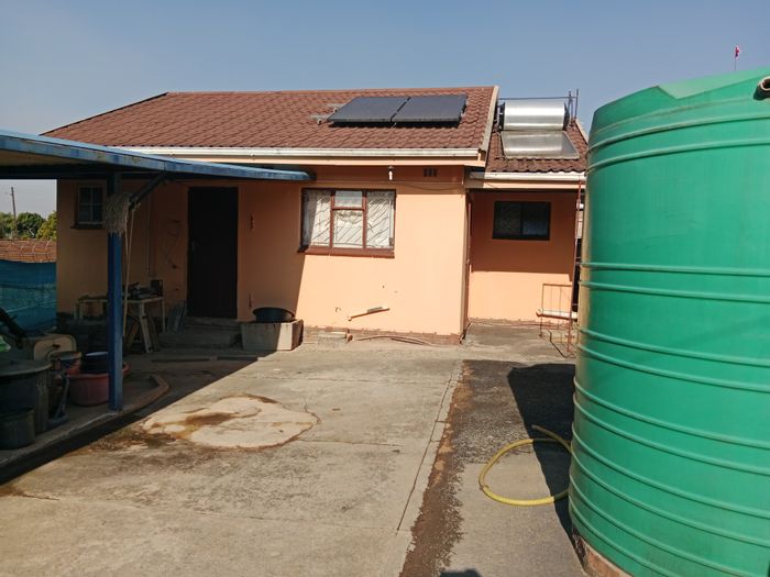 Relaxed family living in peaceful Belfort with roomy open-plan areas, private yard featuring built-in braai and concrete seating; three bedrooms, one bath, massive carport for eight cars.