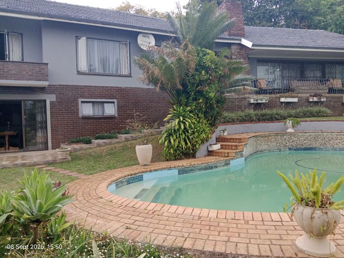 Riverside greenbelt living in Pietermaritzburg with forest outlooks and relaxed family flow — open-plan kitchen, covered verandah with built-in braai and pool. Five bedrooms, three bathrooms and double garage.