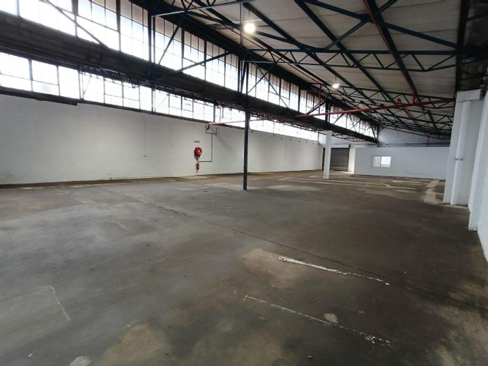 Warehouse for lease, 617m², 3-phase power ±100 amps, open plan, located in Pinetown's industrial estate.