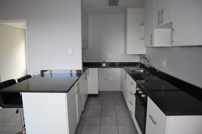 Relaxed suburban living in The Wolds, Pinetown — secure Campbells complex with open-plan kitchen flowing to lounge, built-in cupboards and bathtub. Includes two bedrooms, one bathroom and single carport.