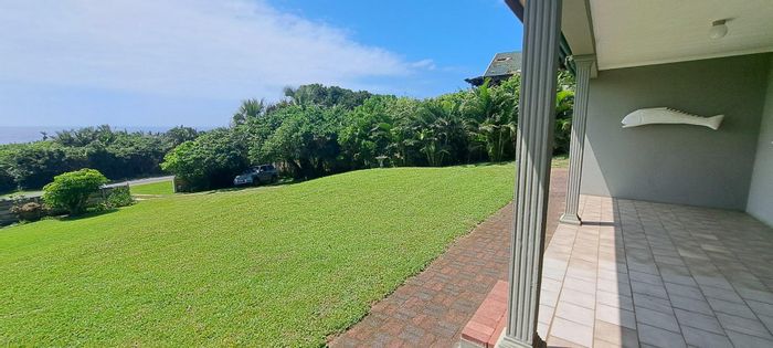 Relaxed, self-sufficient coastal retreat on the KwaZulu‑Natal South Coast with panoramic 180° sea and forest views, open entertainment areas, and four bedrooms, two bathrooms.
