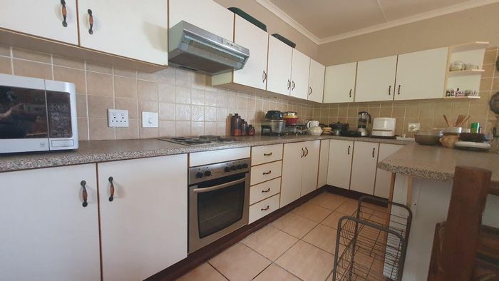 Sunrise beach strolls daily from a dual-dwelling seaside property a short walk to the shore, sea views, built-in bar and patio braai — five-bed main, fenced two-bed cottage.