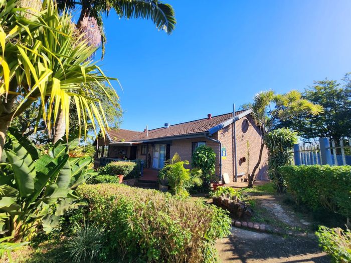 Peaceful cul-de-sac living in treed Umtentweni, minutes from Port Shepstone shops and beaches. Income potential with separate self-contained flats; main house offers light-filled living, 7 beds, 4 baths.