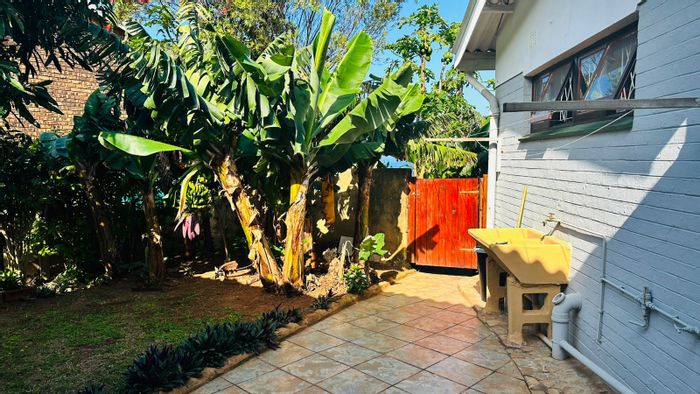 Relaxed suburban living in green Umtentweni, steps from amenities and main roads. Open-plan kitchen flows to a patio overlooking communal gardens; ideal lock-up-and-go with 2 beds, 1 bath, garage.