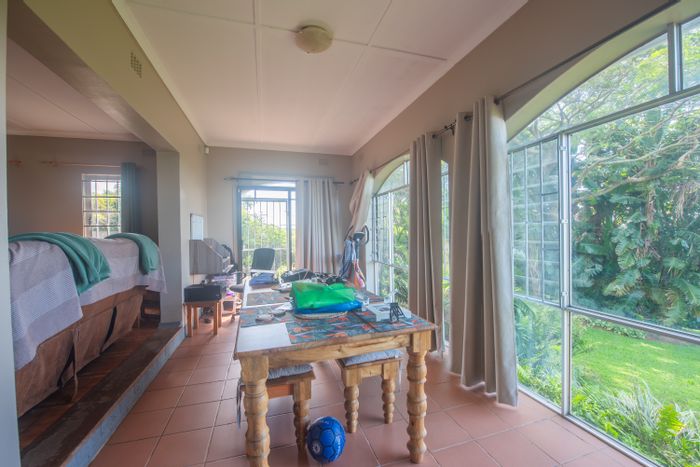 Run your business from home on the R102 South Coast with sea views in Sea Park; expansive 2,523 m² stand for extra flatlet or workshop, four beds, four baths.