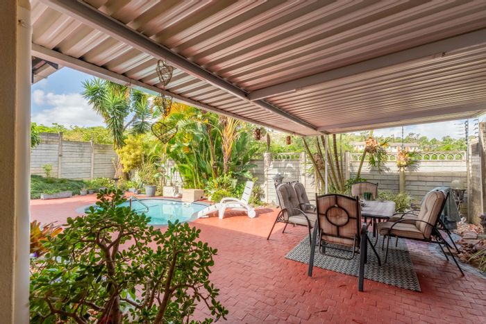 Tropical poolside living in leafy Queensburgh — enjoy seamless indoor-outdoor flow, community markets, pet-friendly grounds and two parking bays; smart modern finishes in this 2-bed, 2-bath sectional.