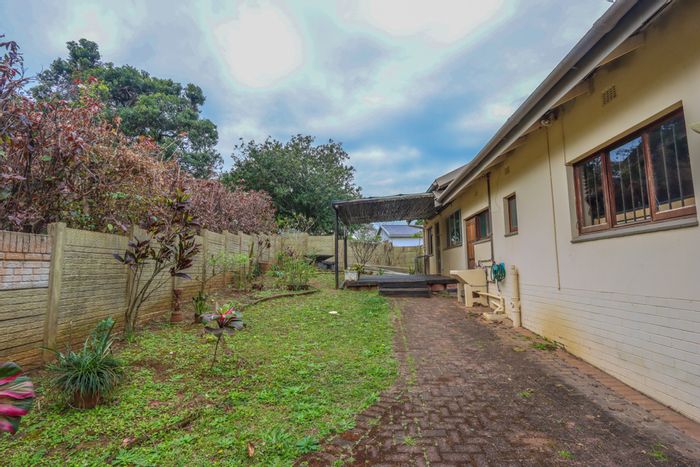 Coastal convenience and easy living in central Scottburgh, steps from shops and the beach, airy open-plan interior with garden views, backup water tanks, two beds, one bath, undercover parking.