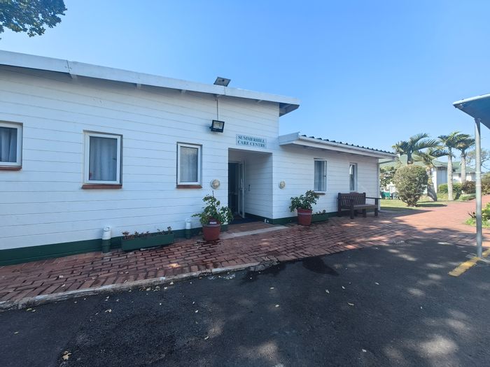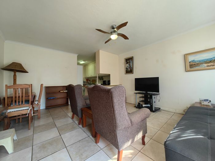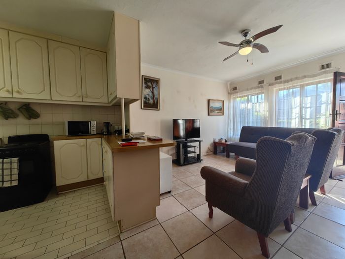 Heart-of-Scottburgh ground-floor unit with bright living space and well-kept communal garden, steps from shops, bowling green and medical facilities — includes secure covered parking, one bedroom, one bathroom.