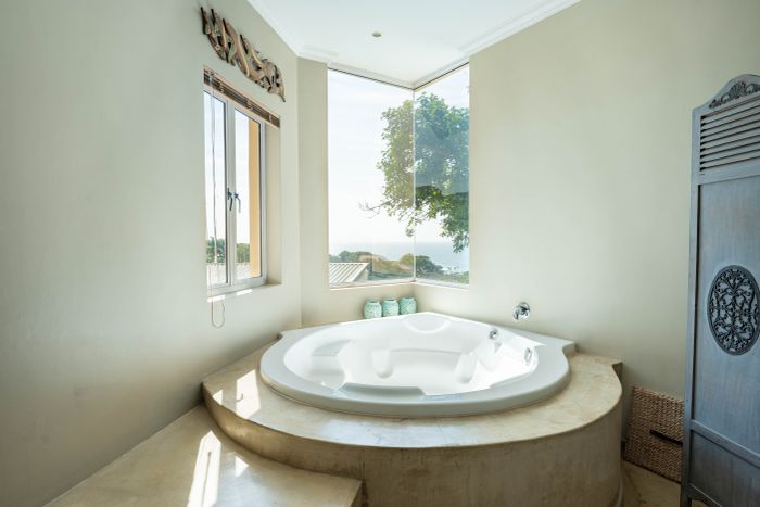 Coastal living steps from the beach in Scottburgh Central, furnished open-plan flat with sweeping sea views and modern kitchen. Three bedrooms, two bathrooms, and single garage.