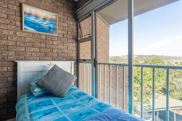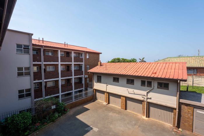 Seaside flatlet steps from Scottburgh beach with sweeping ocean views, open-plan living, communal pool and braai — ideal holiday rental or getaway. Two bedrooms, one bathroom, undercover parking.