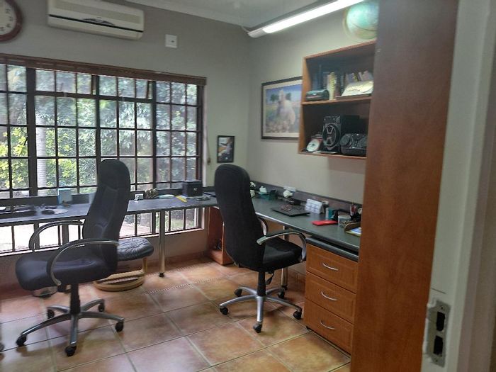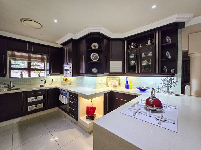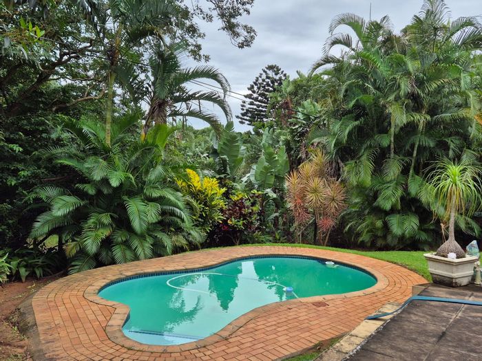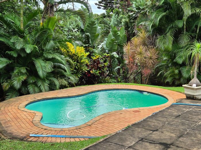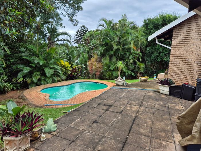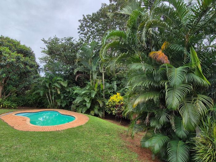Villa-style retreat in sought-after Southbroom with tropical entrance, rim-flow pool and braai patio, granite kitchen with gas hob and scullery — three ensuites and double automated garage.