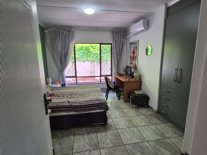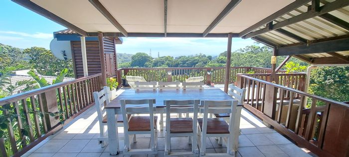 Prestigious beachfront living in Southbroom with sea and lagoon views, direct lawn access and huge enclosed entertainment patio. Indo-African furnished 4-bed, 3.5-bath townhouse with double garage.