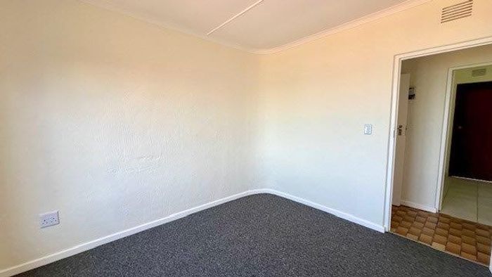 Relaxed beachside living in Marina Beach, footsteps from the tidal pool, with a covered balcony and distant sea views, communal pool and braai area — one-bedroom apartment ideal for holidays.