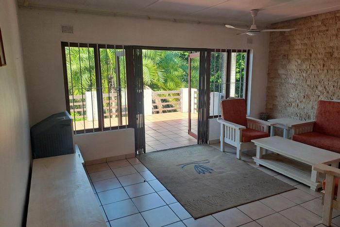 Coastal lock-up-and-go living in Southbroom steps from the main beach; open-plan lounge flows to an expansive patio overlooking lush tropical gardens. Two bedrooms, two bathrooms in a secure five-unit complex.