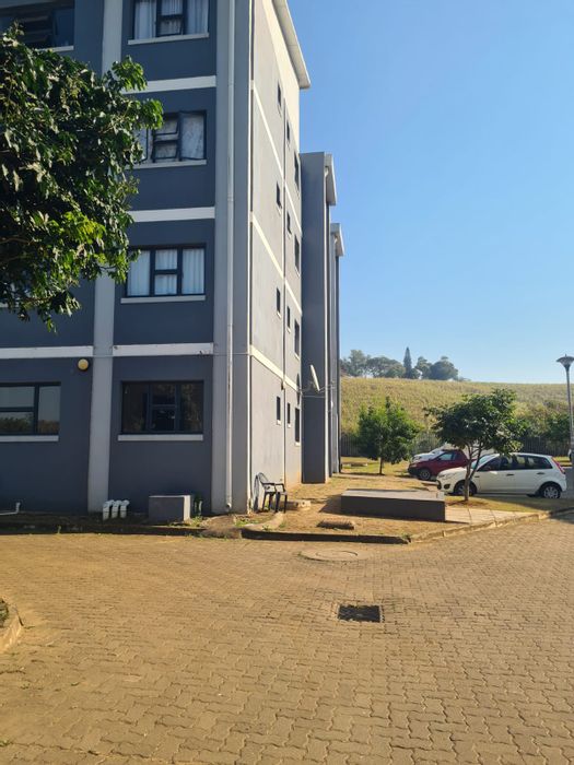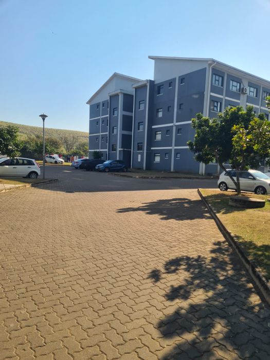Ground-floor apartment in the heart of Tongaat Central — open-plan living with a fully fitted kitchen, built-in cupboards, JoJo tank and 24-hour secure complex, close to amenities.
