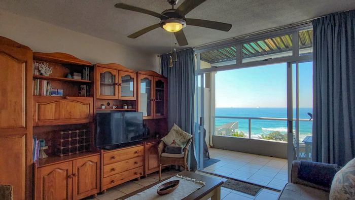 Permanent holiday lifestyle in Umdloti, steps from the tidal pool and restaurants, open-plan apartment with uninterrupted ocean views to Durban Harbour, communal pool, two bedrooms, two bathrooms.