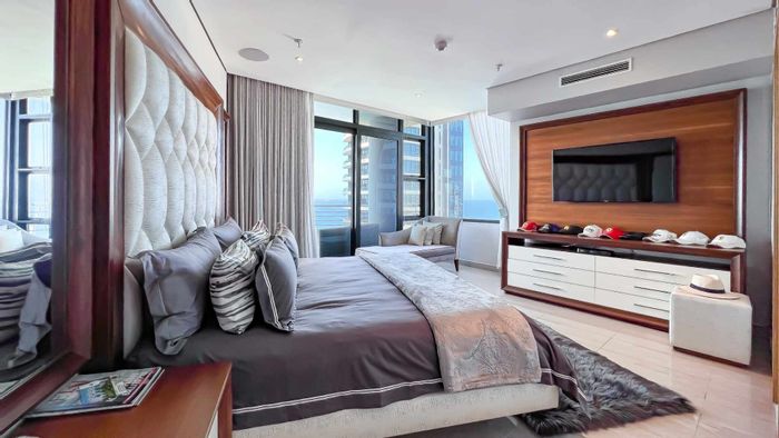 Coastal lifestyle in Umhlanga — morning walks on the 5km promenade and easy access to shops, hotel and airport. Expansive balcony with floor-to-ceiling doors and sea views; three en-suite bedrooms.
