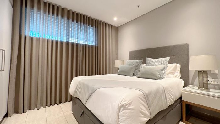 Resort-style coastal living in Umhlanga, steps from Pearls Mall and the promenade, with a sprawling 35m² balcony offering sweeping ocean views; fully furnished, three en-suite bedrooms, two covered parking