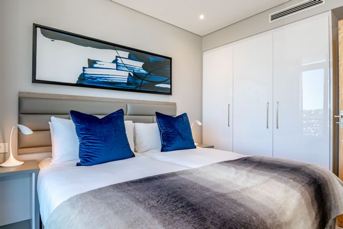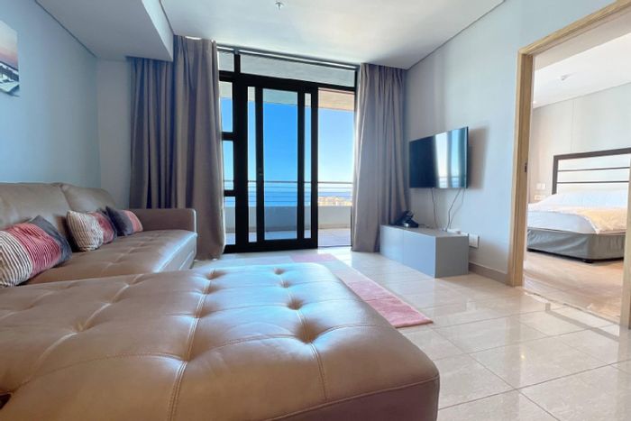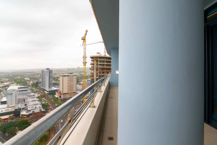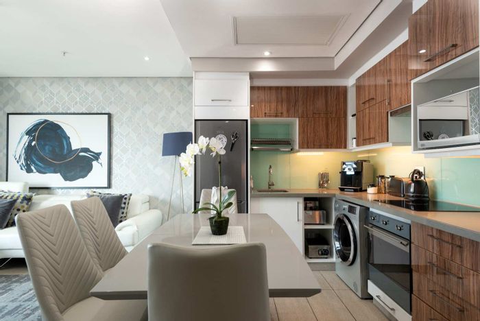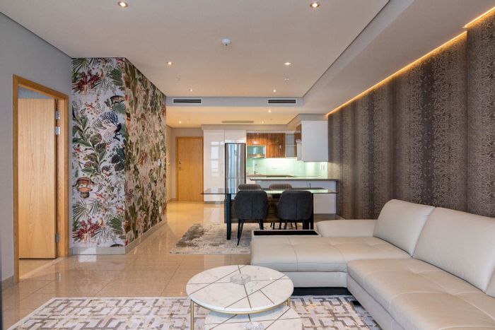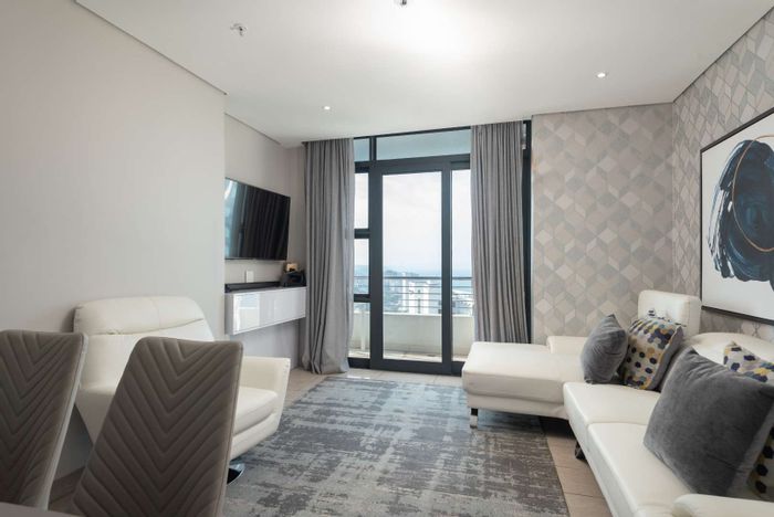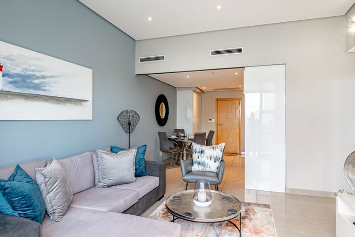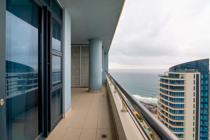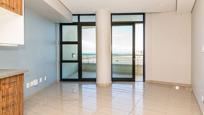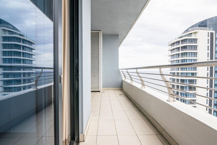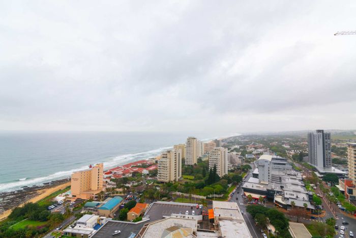 Mall-side coastal lifestyle in Umhlanga with panoramic sea views, an 11m2 balcony for sunrise coffee, two bedrooms, two bathrooms and covered parking.