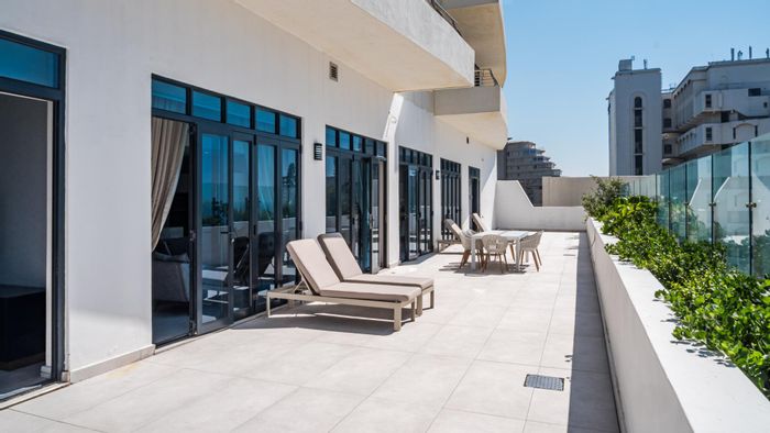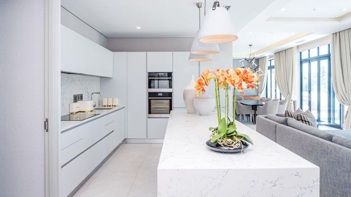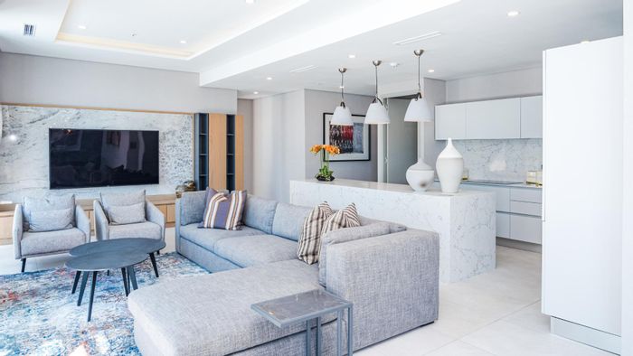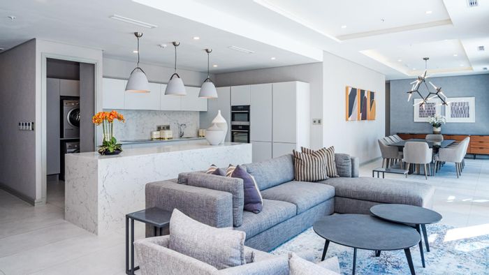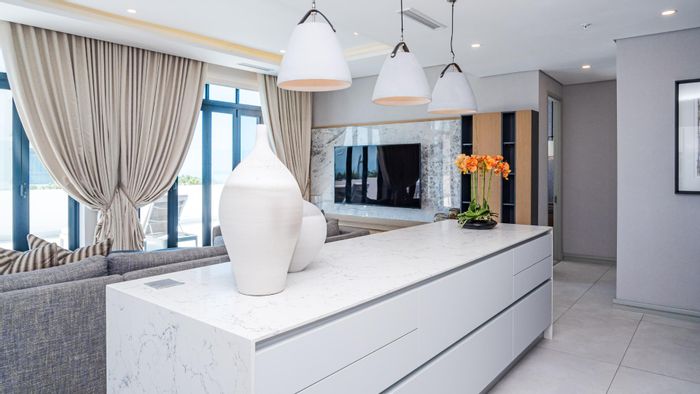Entertain effortlessly overlooking the Indian Ocean in Pearls of Umhlanga, steps from the promenade; a designer four-bedroom, four-bath apartment with 104m² balcony, outdoor cinema and juice bar.