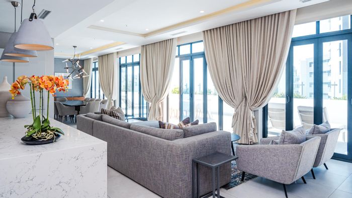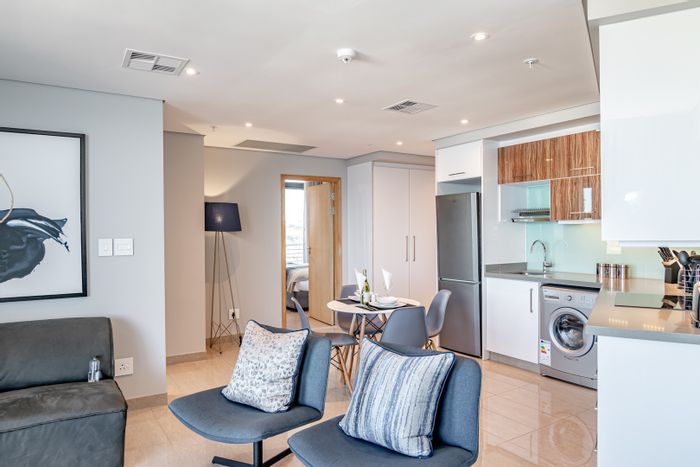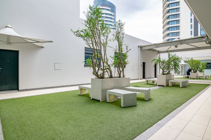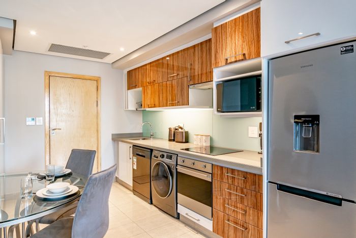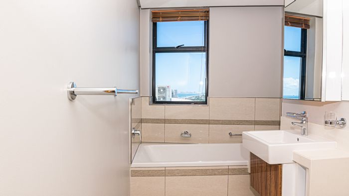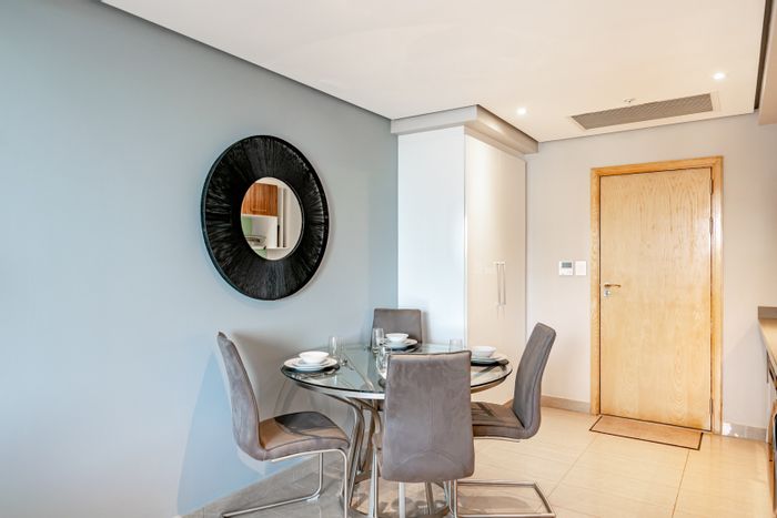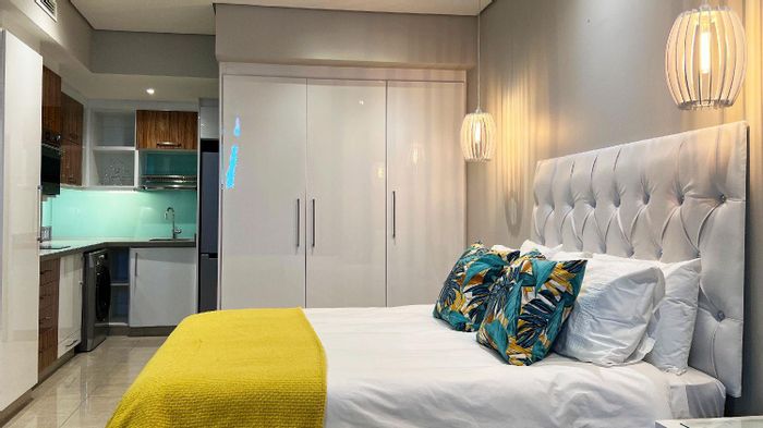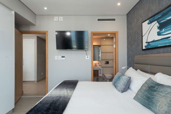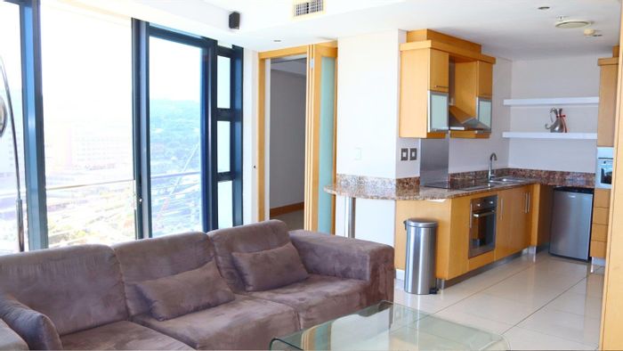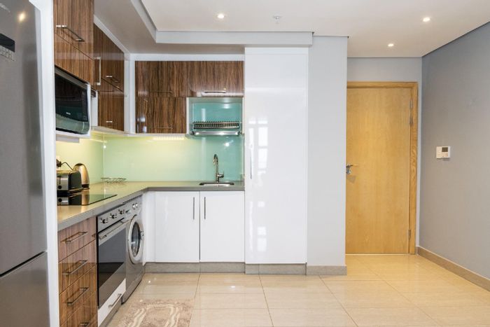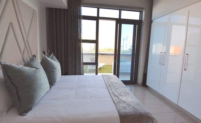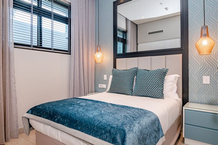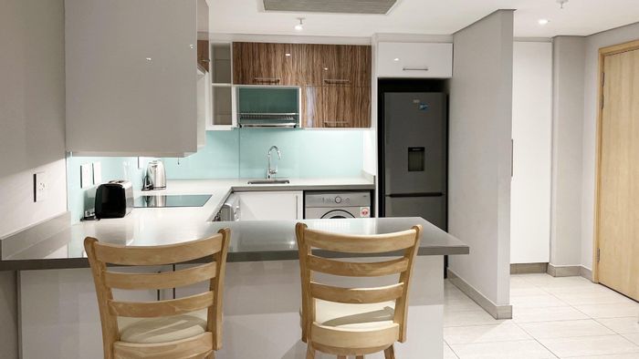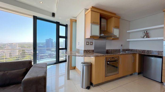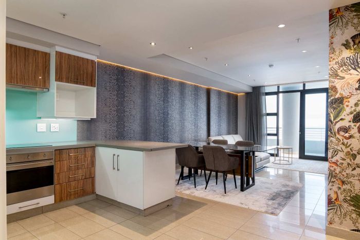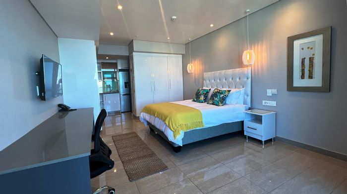Upscale coastal living with Indian Ocean views and direct access to Pearls Mall and Umhlanga promenade. Large one-bedroom with ensuite and guest toilet, private entrance, Juliet balcony, secure parking.