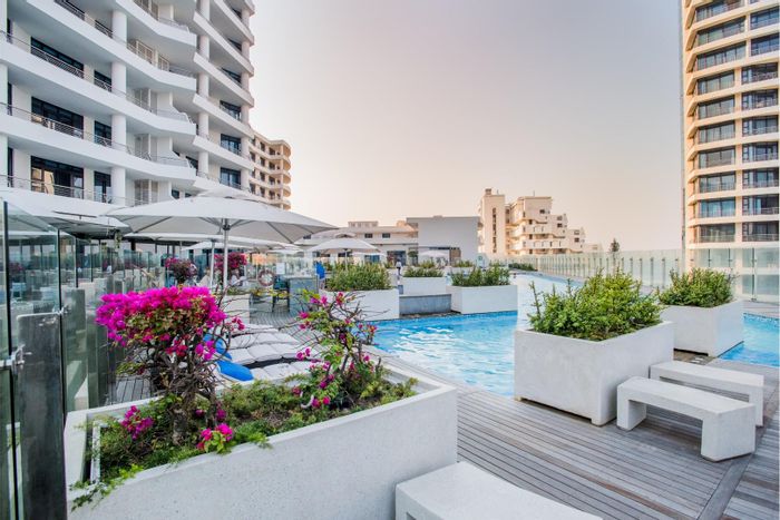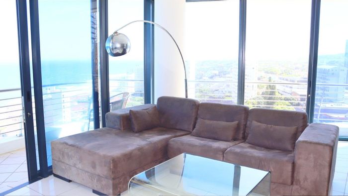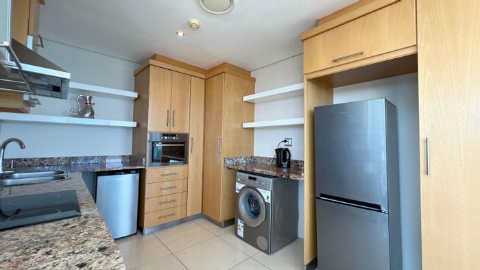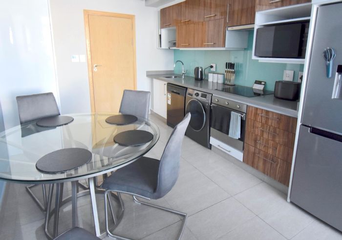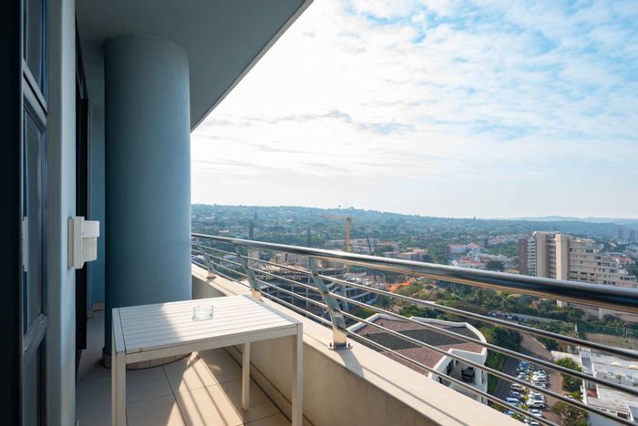 Enjoy beachfront living and promenade strolls in Pearls of Umhlanga, with a balcony overlooking the Indian Ocean and Durban city — fully furnished one-bedroom, one-bath with covered parking.