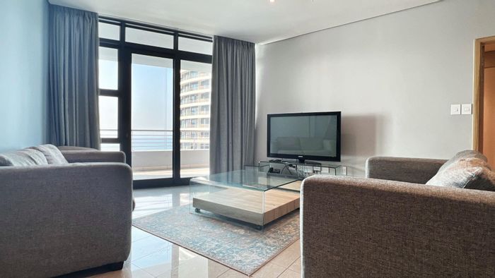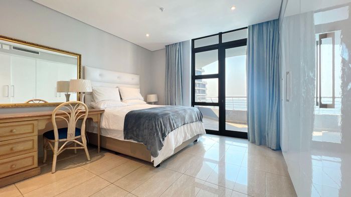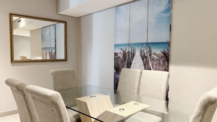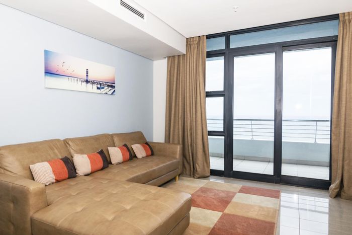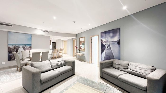 Seaside living with direct Pearls Mall access and a lift to Umhlanga Promenade; enjoy shoreline views, hotel-serviced pool, 24-hour security — fully furnished, two beds, two baths, covered parking.
