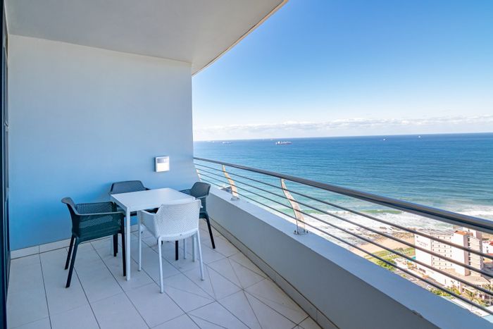 Resort-style coastal living steps from Umhlanga Main Beach and Whale Bone Pier, renovated studio with balcony offering spectacular sea views, en-suite bathroom and secure undercover parking.