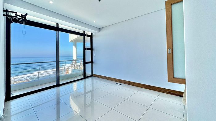 Beachfront living at Pearls of Umhlanga with direct promenade access, expansive 42 sqm patio and sea views; two en-suite bedrooms, two covered parking bays and resort pool.