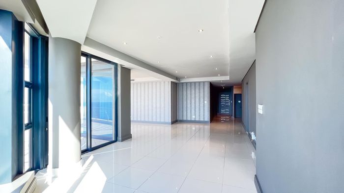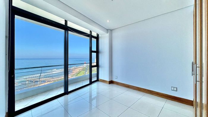 Beachfront living on Umhlanga promenade with daily ocean sunrises, expansive 45m² terrace and panoramic views, three ensuite bedrooms, 3.5 bathrooms and two covered parking.