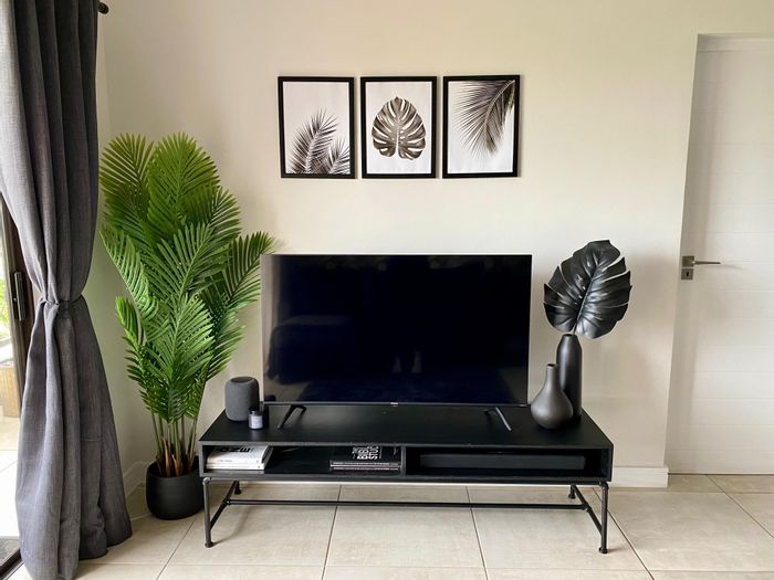 Contemporary living in Izinga Eco Estate — bright open-plan kitchen/living, versatile half-bedroom for study or nursery, 24/7 security, near Umhlanga schools and shopping. 3 beds, 2 baths, double garage.