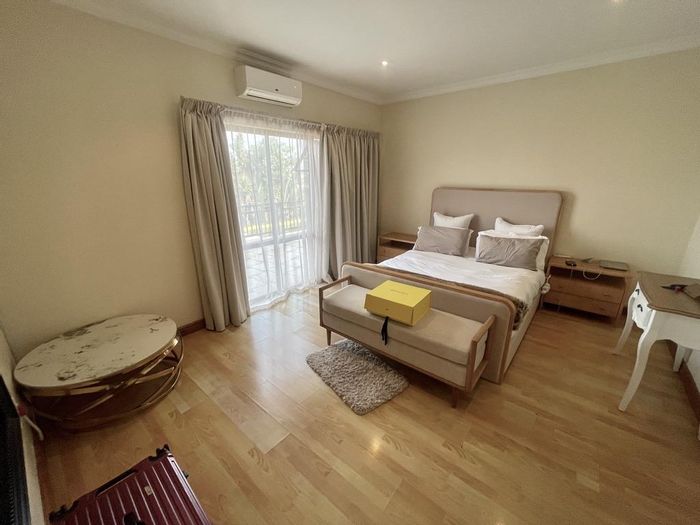 Effortless entertaining and family living in a prestigious gated estate with a garden and entertainer's backyard featuring heated pool, jacuzzi, built-in braai and pizza oven. Four en-suite bedrooms, four-car garage.