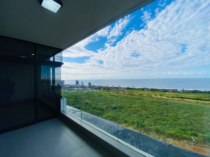 Seaside living with panoramic ocean views in Skye Ridgeside, Umhlanga — minutes from Umhlanga Village, Gateway Mall and beaches. Private balcony, modern open-plan kitchen, three bedrooms, two bathrooms, two covered parking.