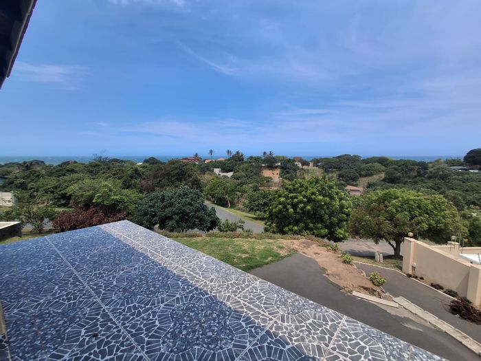 Coastal family retreat in secure Nkwazi Ridge Estate with sweeping sea views, expansive verandas and a private rim-flow pool — seven bedrooms, five bathrooms and double garage.