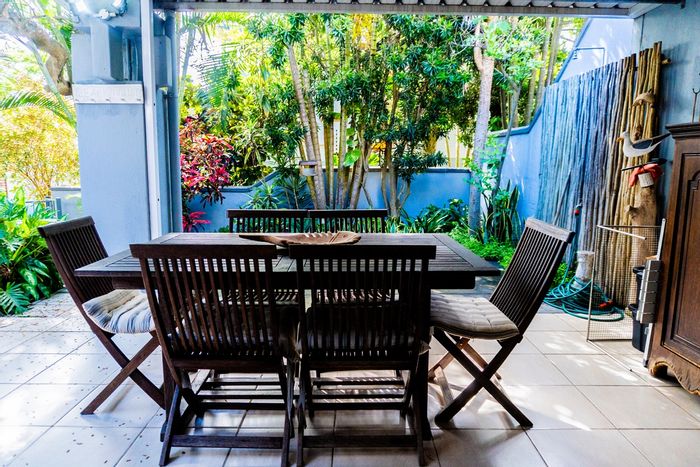 Embrace relaxed coastal living minutes from Zinkwazi beach and lagoon, with a private paved courtyard — fully furnished three-bedroom townhouse with 2.5 baths and direct-access garage.