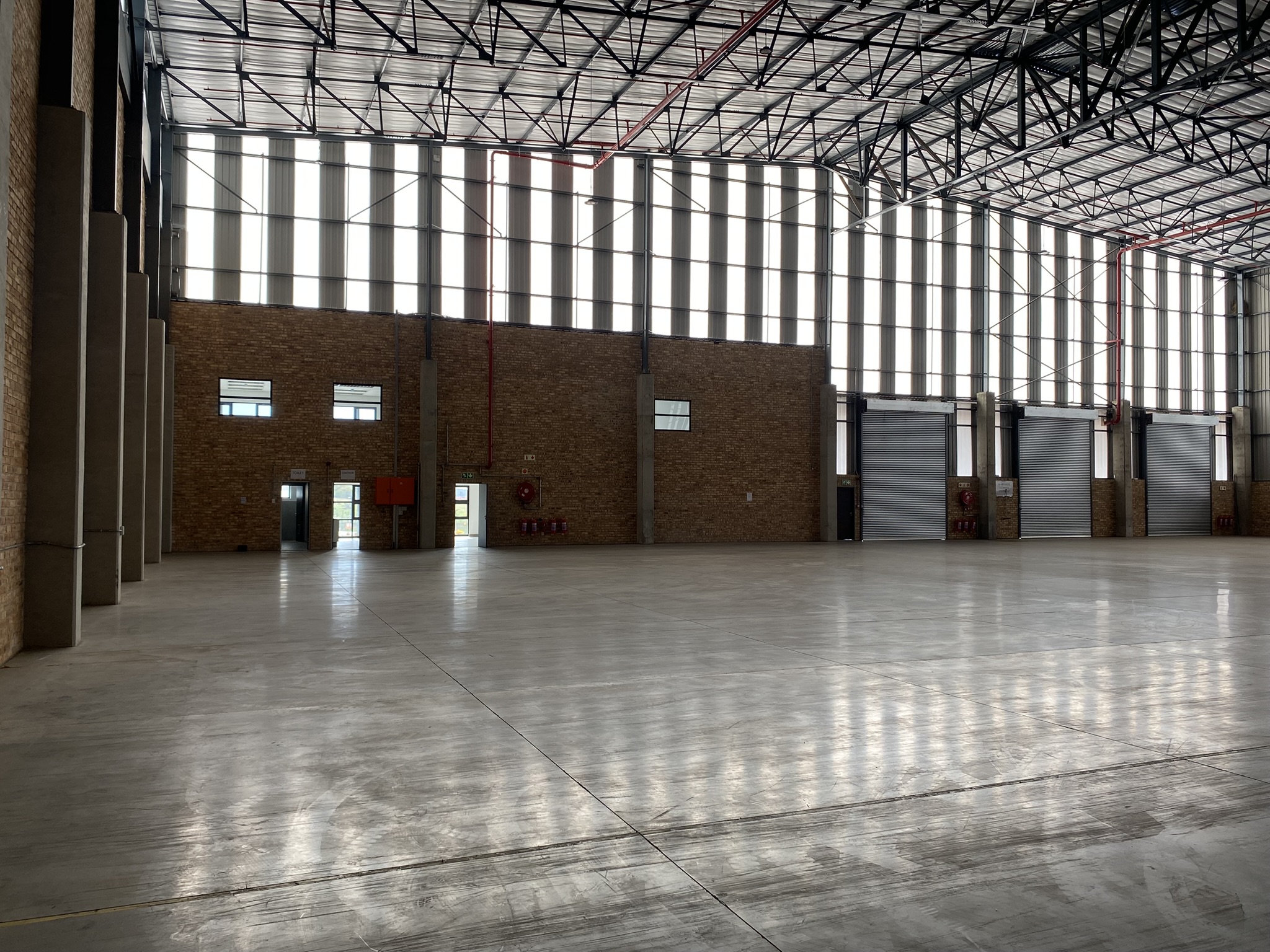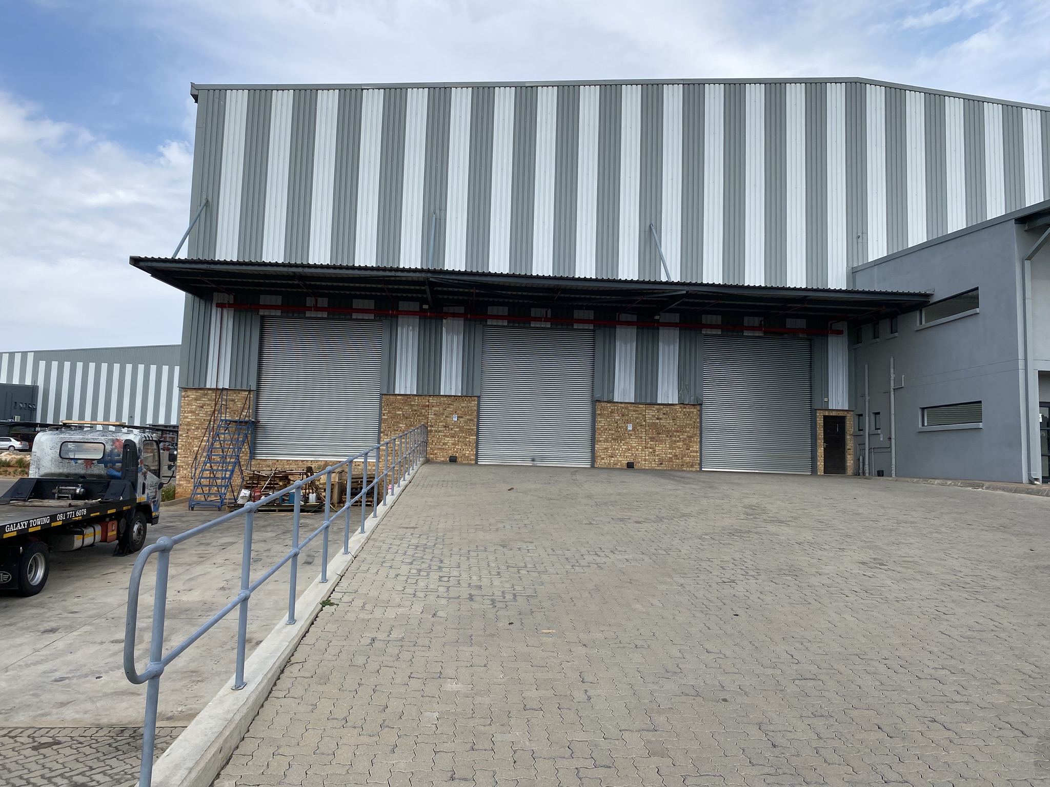 The entrance to the complex is boomed & monitored and there is 24-hour roaming security. The unit is comprised of 2932m2 dedicated warehouse space, with 498m2 shared between office and showroom space on the ground and first floors. The warehouse has two on-grade roller-shutter doors, and one dock leveled roller-shutter door. The warehouse has approximately 10 meters height to the lowest point of the eaves. The park is designed to accommodate super-link trucks and the unit’s large yard allows for their articulation. Three phase power is available (80 amps) and the warehouse is fitted with a sprinkler system and a solar solution. There is also a back-up generator if required. Levy R17 150 per month. The asking price of R31 899 000.00 excludes vat. This facility can also be rented for R233 240 excluding vat per month.