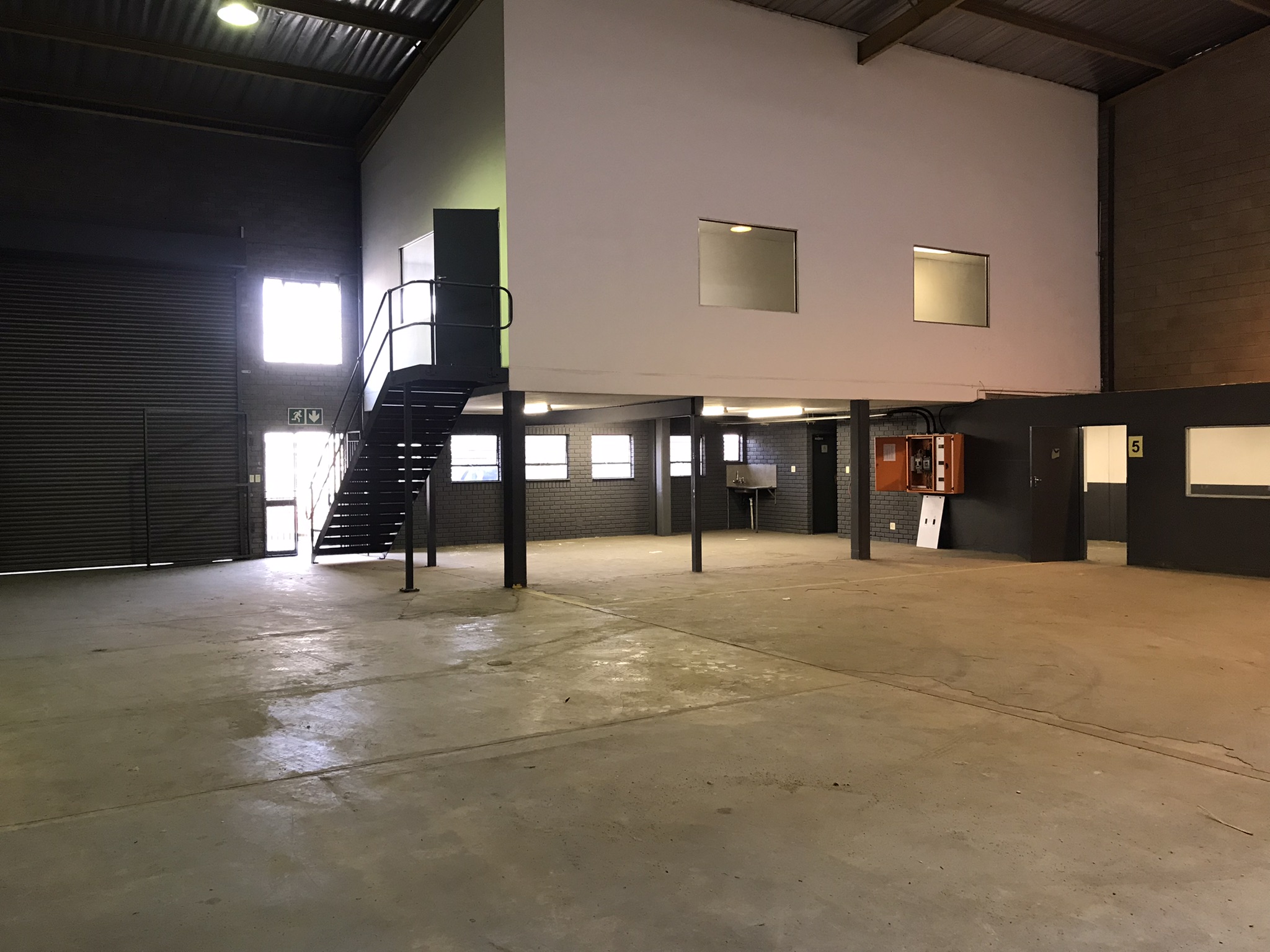 This facility is within a secure industrial park that has a boomed entrance and 24-hour security. The 100m2 first floor is made up of an open plan area, a boardroom, bathroom and kitchenette. The warehouse has a kitchenette, bathroom and changing area. There is one on-grade roller-shutter door, three phase power with 60 amps per phase available, and good stacking height (six meters) in the warehouse. The unit is equipped with back-up power and water. Occupation: 1 September 2025