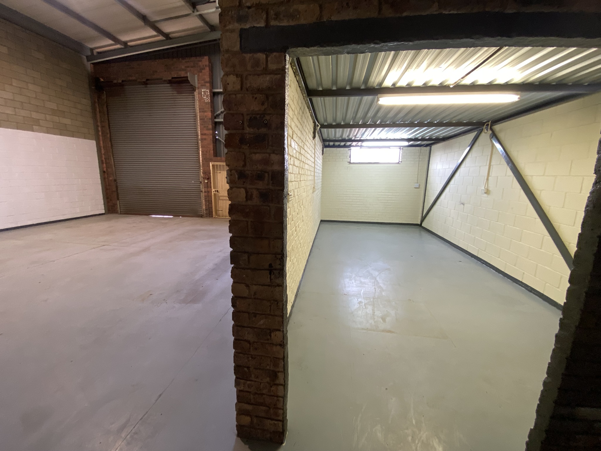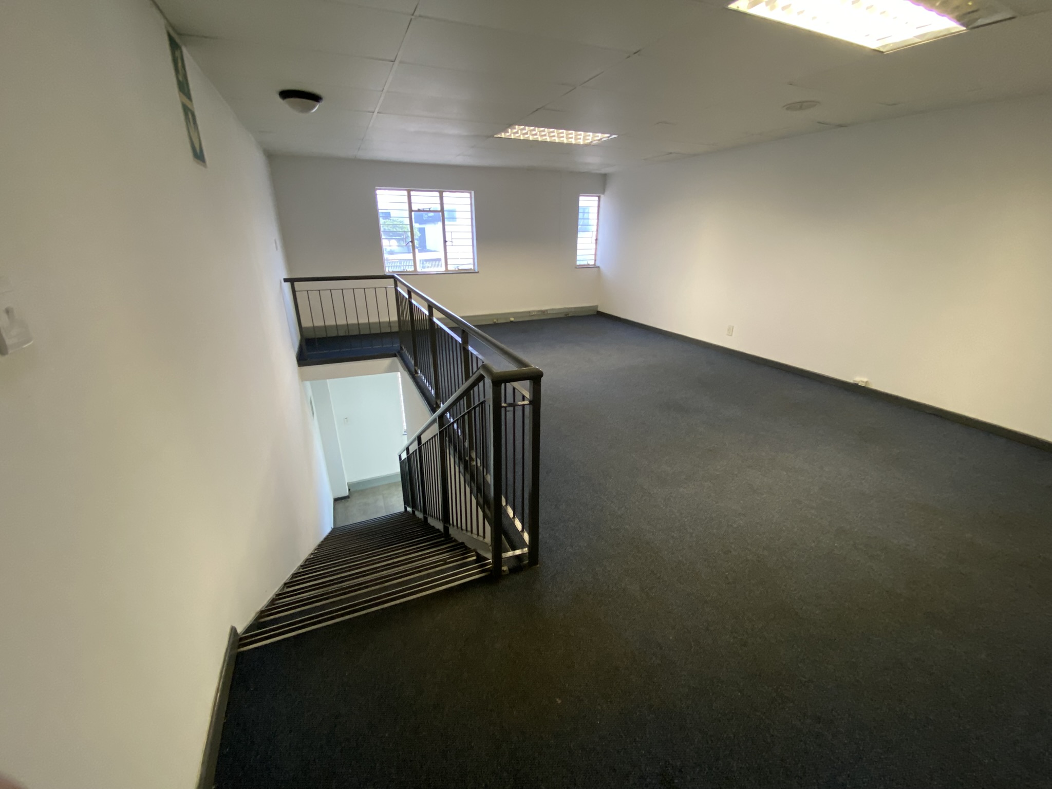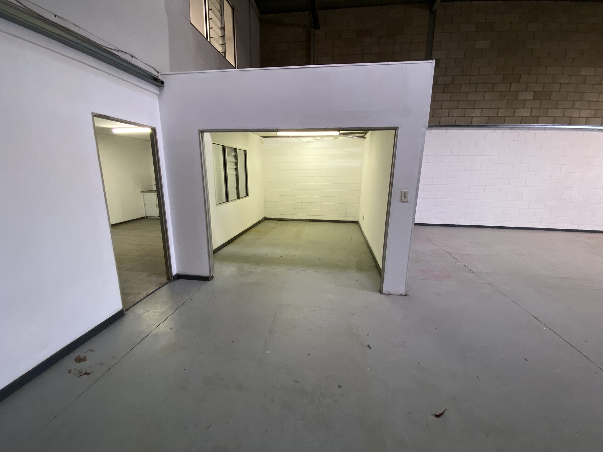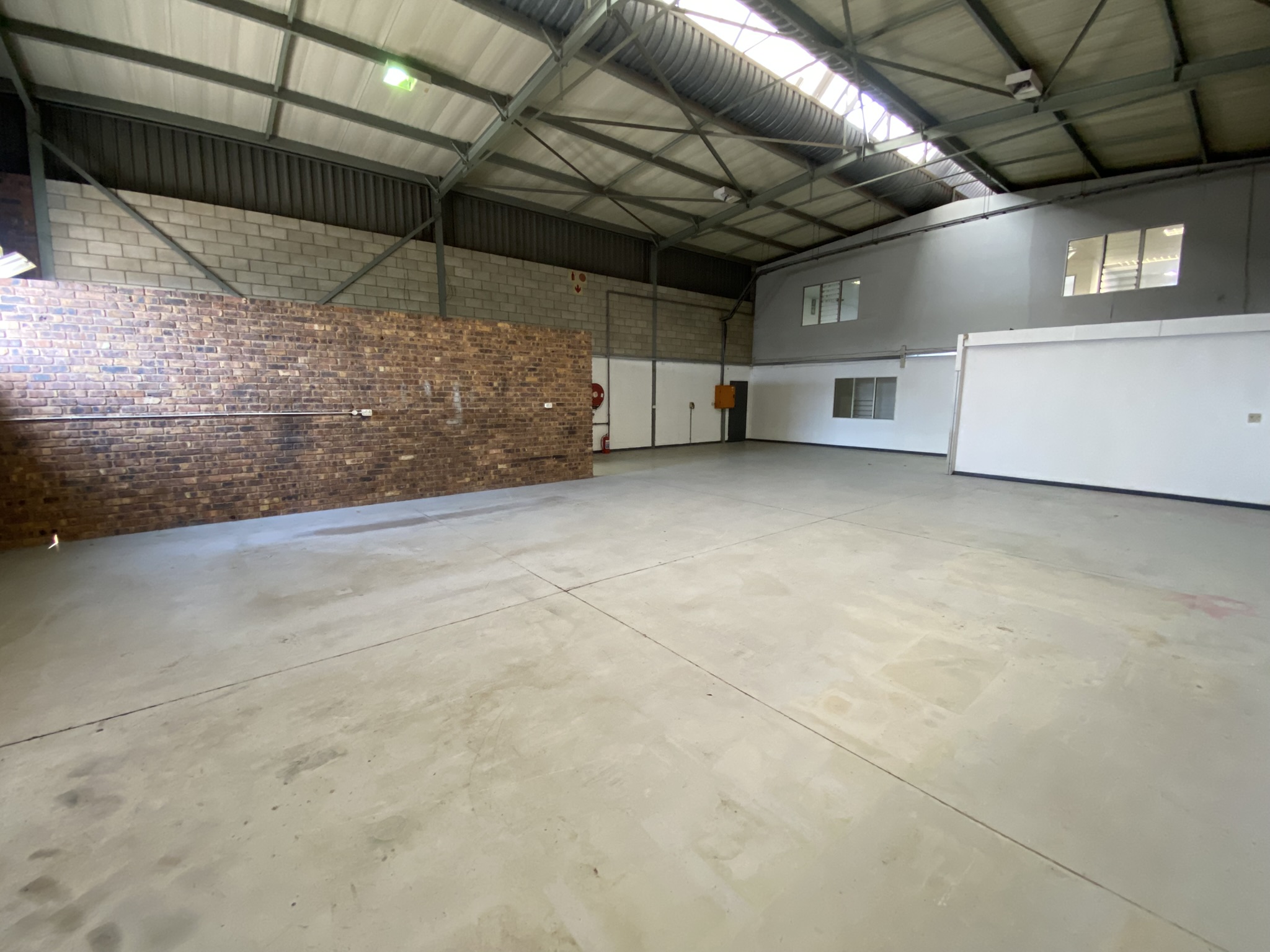 This industrial unit consists of 183m2 office space split over two floors and 194m2 dedicated warehouse space. The office component comprises a reception area, one office and ladies & gents’ bathrooms with shower on the ground floor, and a large open plan looking onto the warehouse, an office and a single bathroom on the first floor. The warehouse is approximately 195m2, has a 5 meter on-grade roller-shutter door with 6 meters height to the lowest point of the eaves and three phase power with 80 amps per phase available. The warehouse has two storage areas, one of approximately 15m2 and the other 30m2. This 378m2 industrial unit is within a secure complex offering 24 -hour security and access. The adjacent unit of 378m2 is also available to let, which combined offers the user a total of 756m2.
