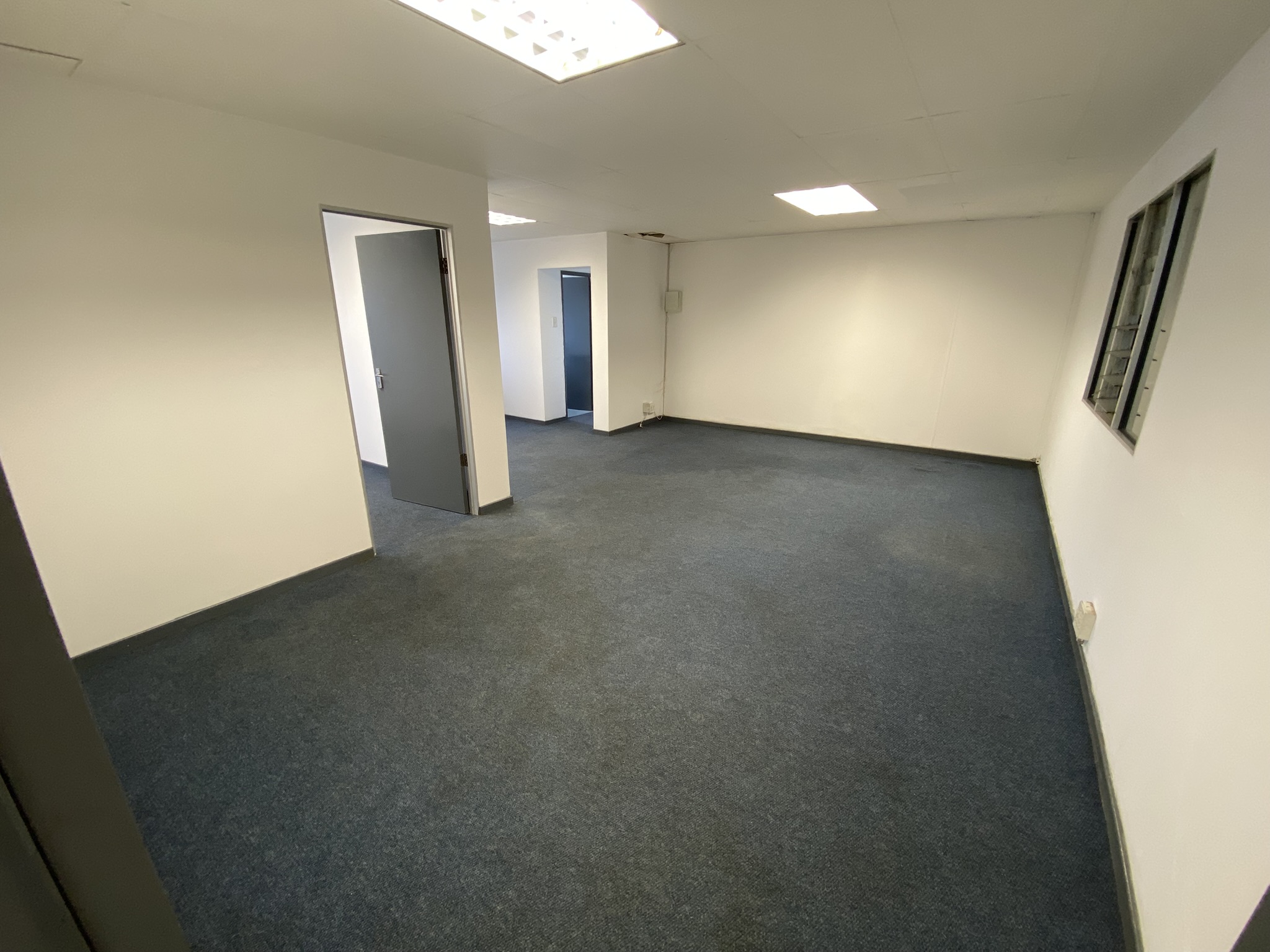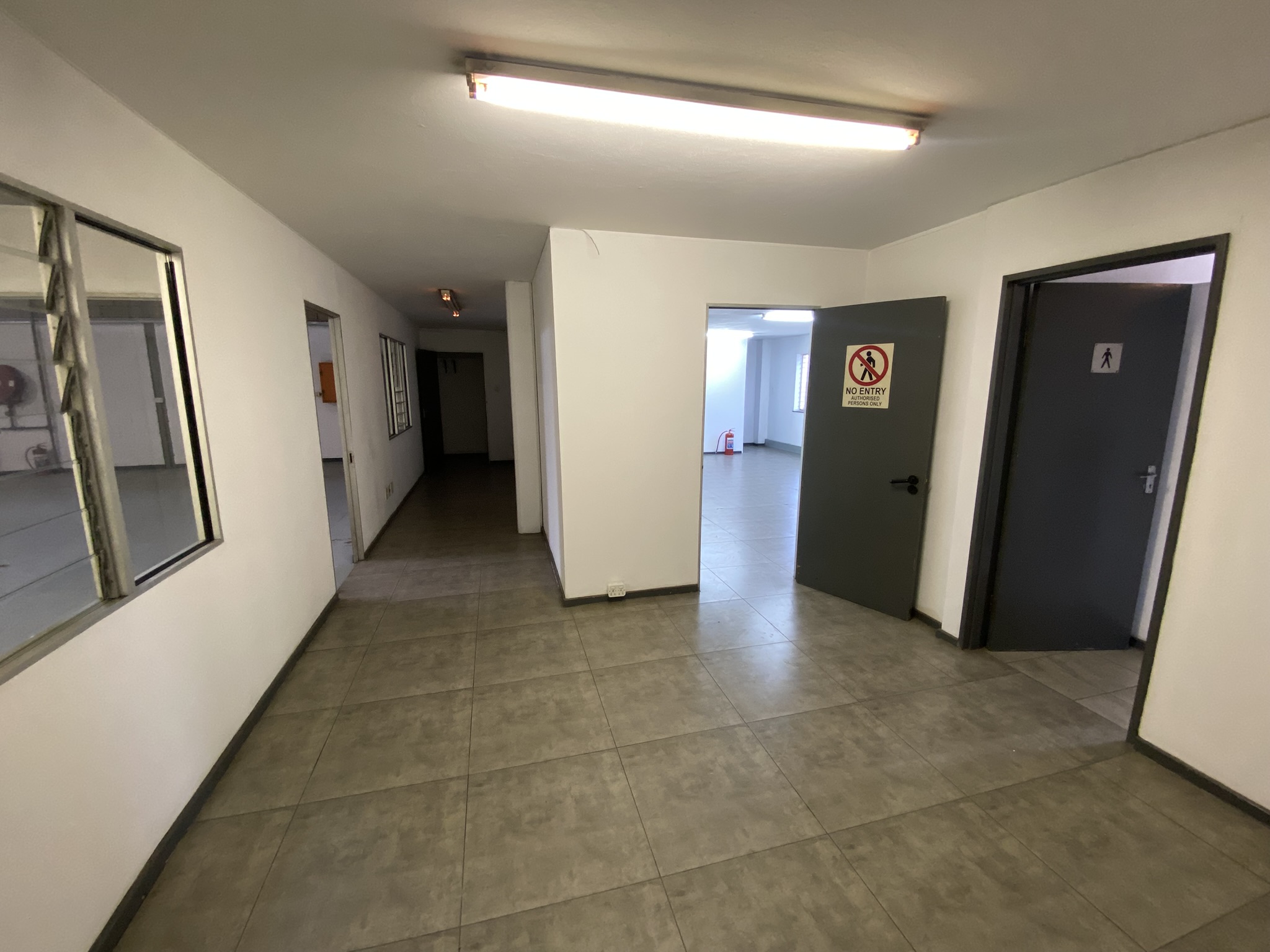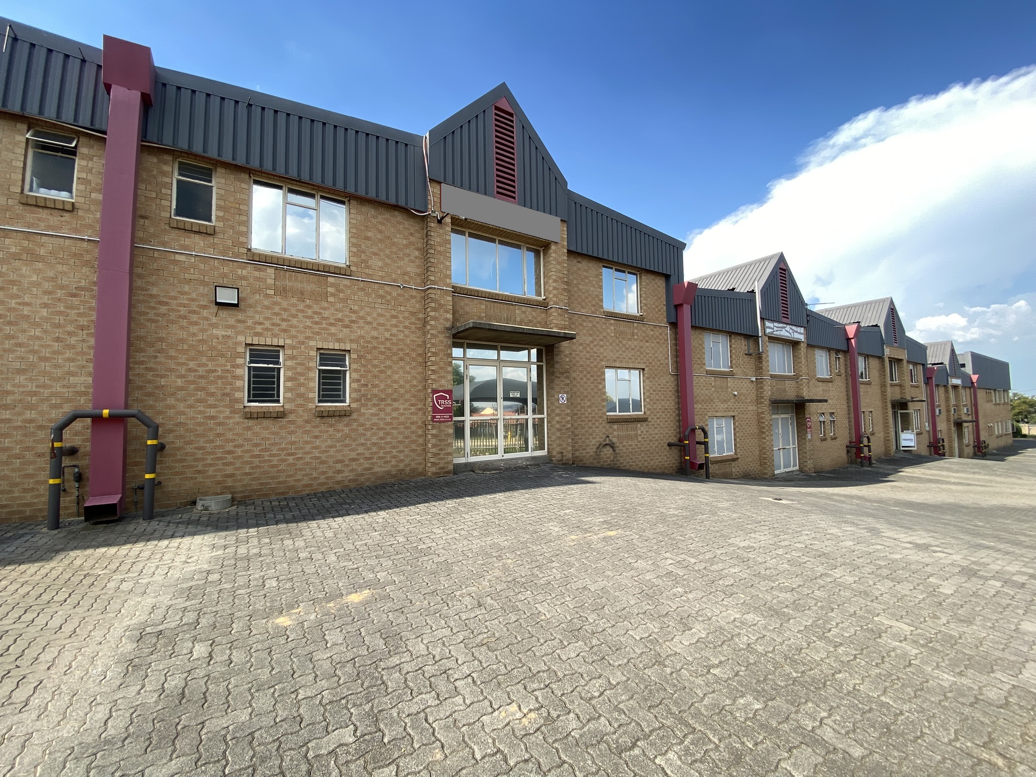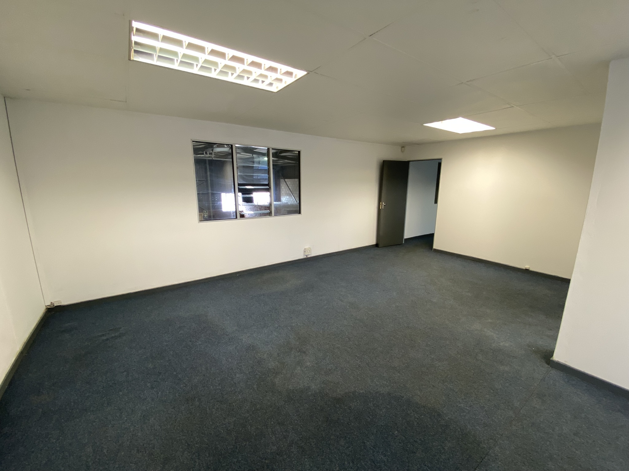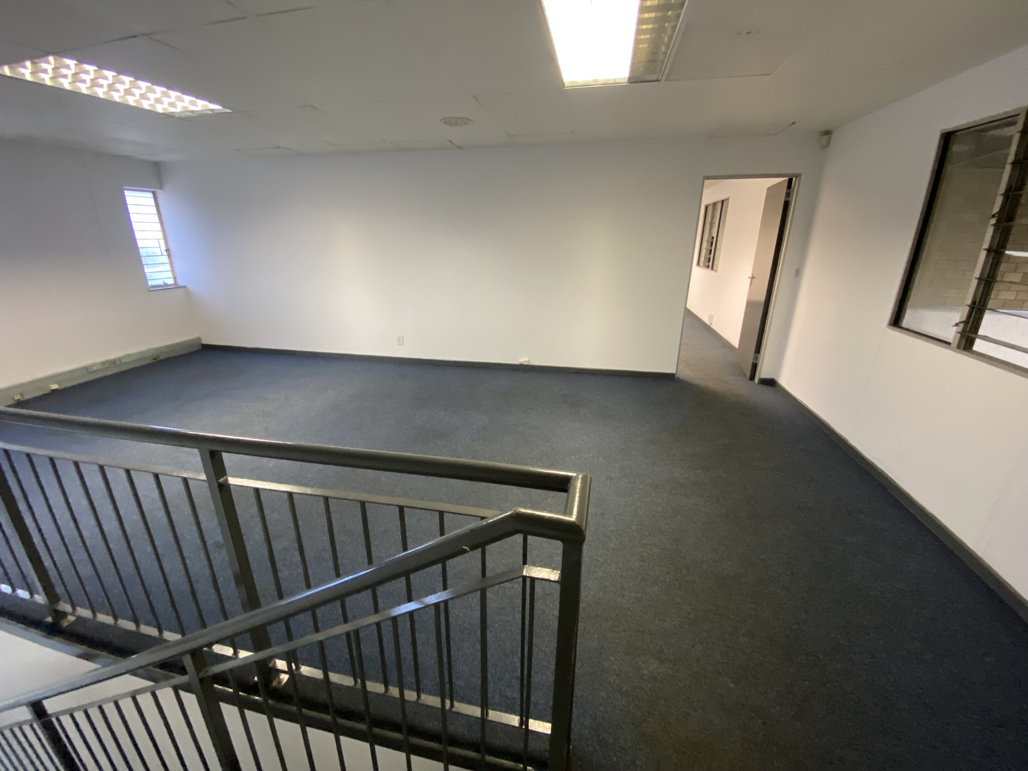 This industrial unit consists of 183m2 office space split over two floors and 194m2 dedicated warehouse space. The office component comprises a reception area, one office and ladies & gents’ bathrooms with shower on the ground floor, and a large open plan looking onto the warehouse, an office and a single bathroom on the first floor. The warehouse is approximately 195m2, has a 5 meter on-grade roller-shutter door with 6 meters height to the lowest point of the eaves and three phase power with 80 amps per phase available. The warehouse has two storage areas, one of approximately 15m2 and the other 30m2. This 378m2 industrial unit is within a secure complex offering 24 -hour security and access. The adjacent unit of 378m2 is also available to let, which combined offers the user a total of 756m2.