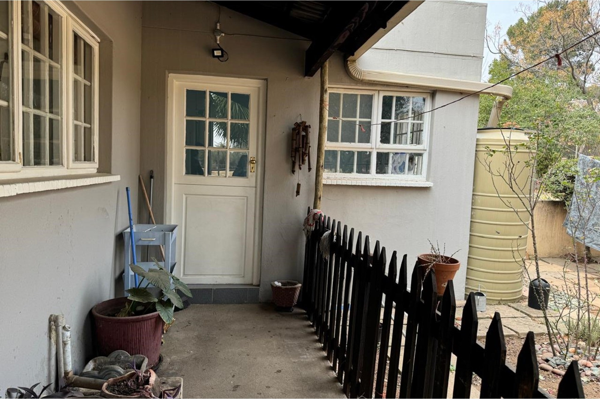 Borehole with 3 pumps 5KVA 20 0000 back up piped to all dwellings,