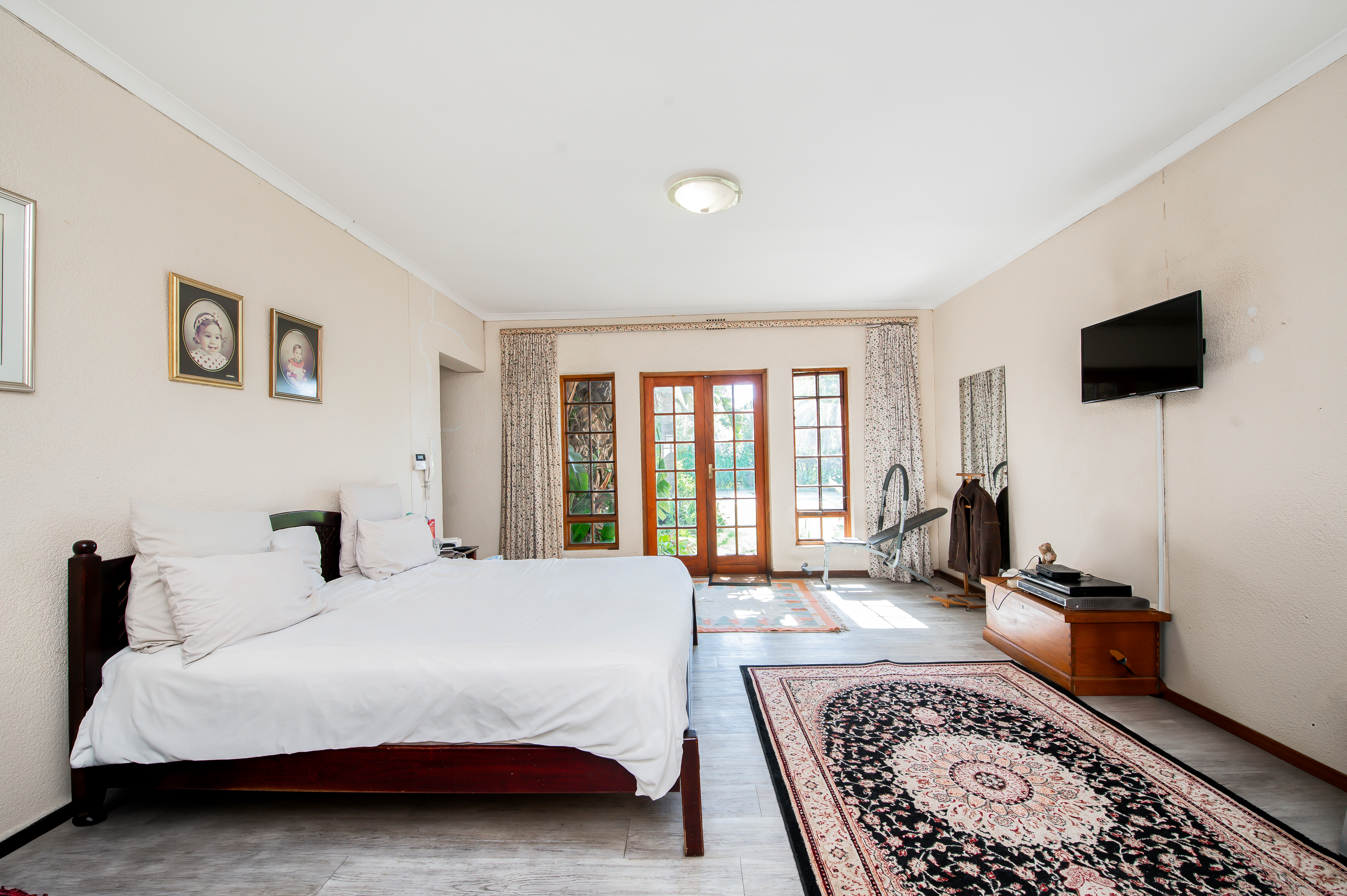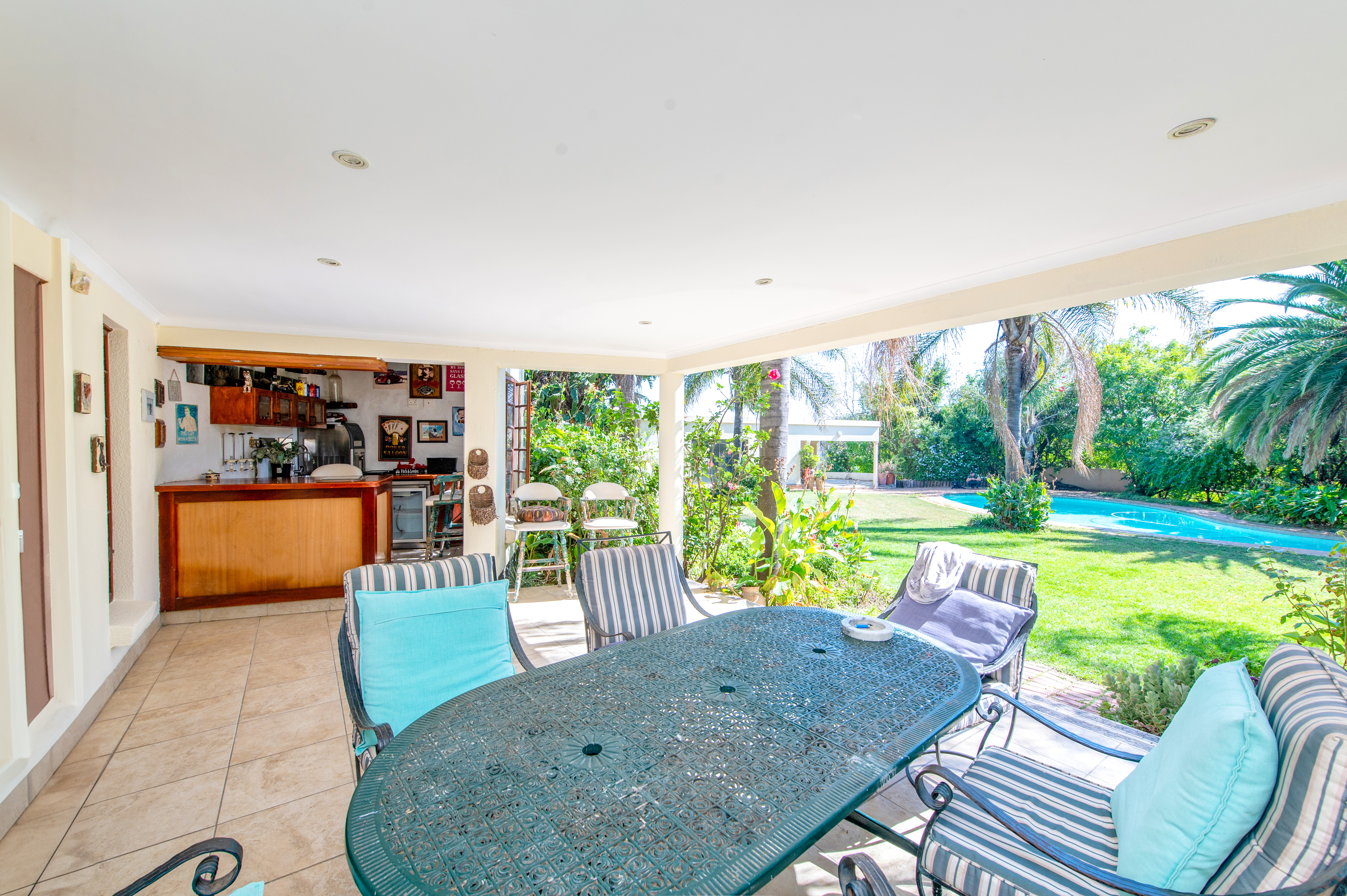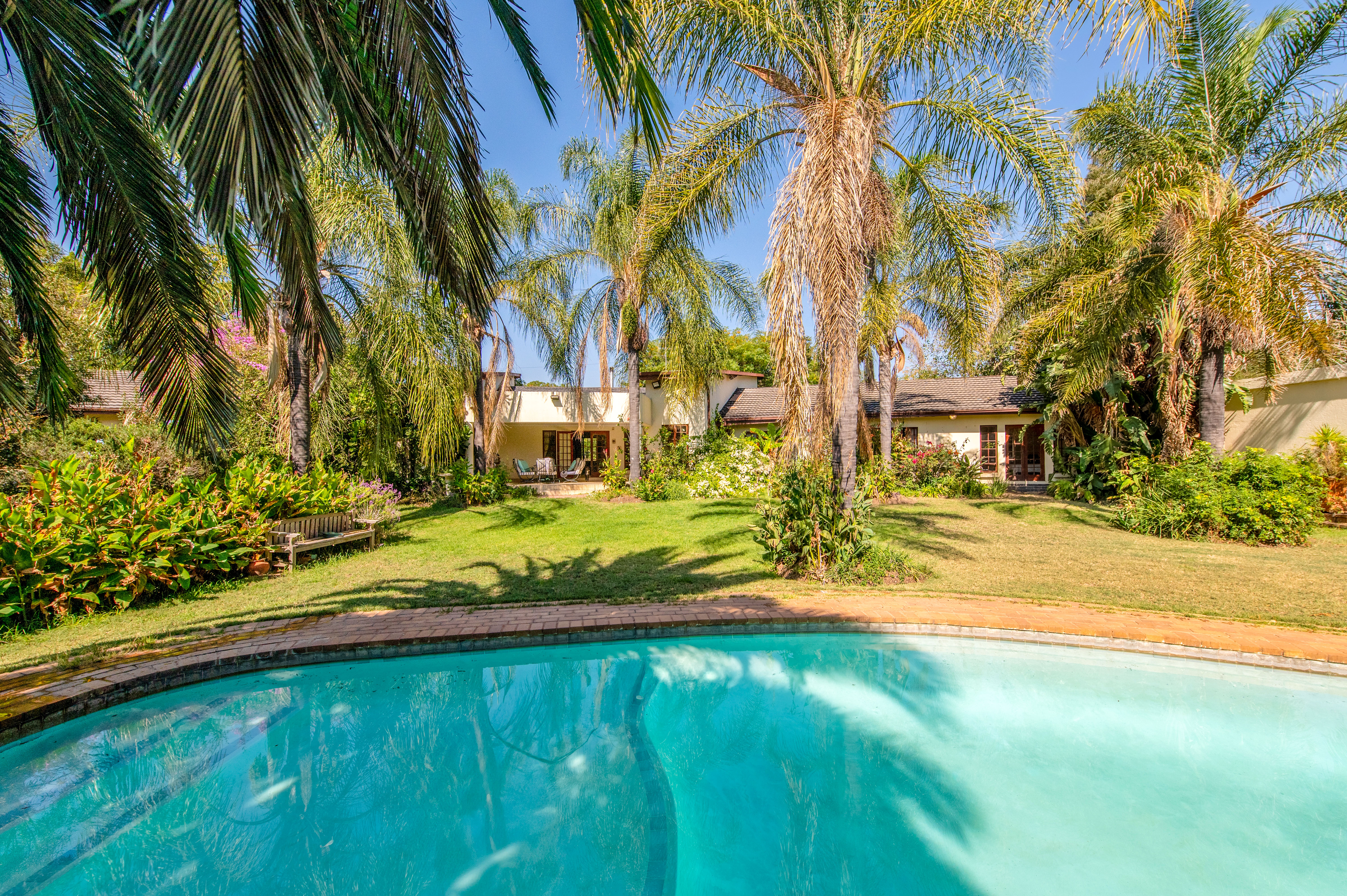 A separate entertainment room offers the potential to convert into a third cottage, gym, or just a great entertainment area, providing a picturesque view of the sparkling big pool.