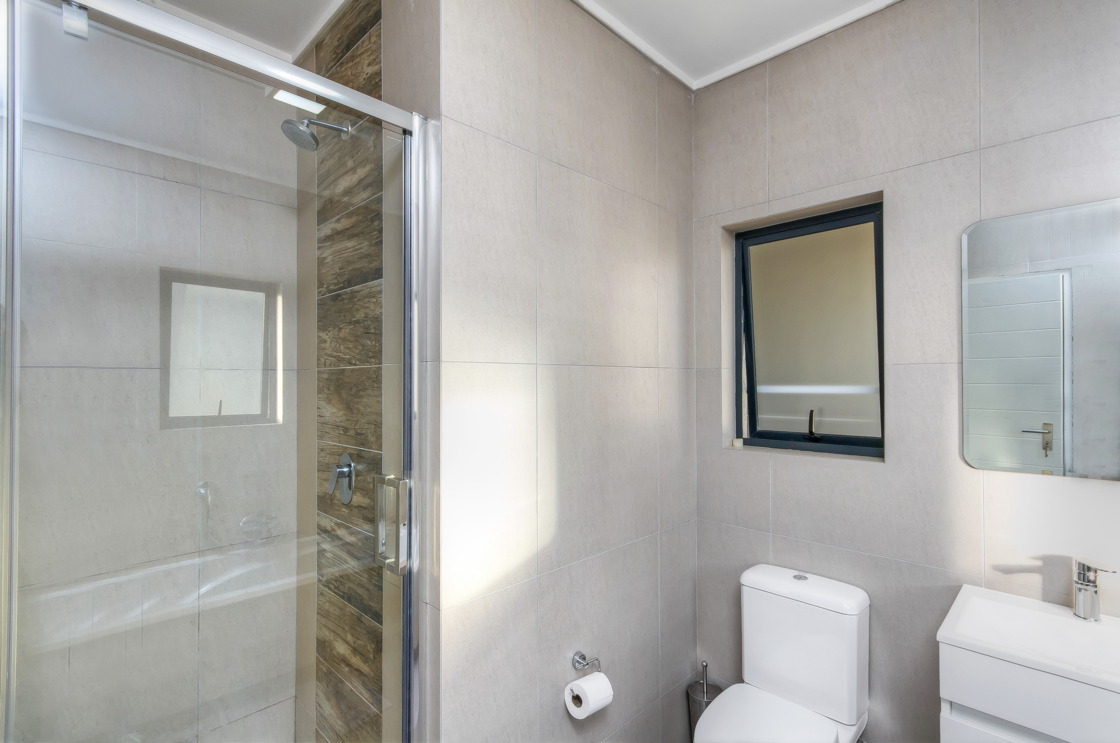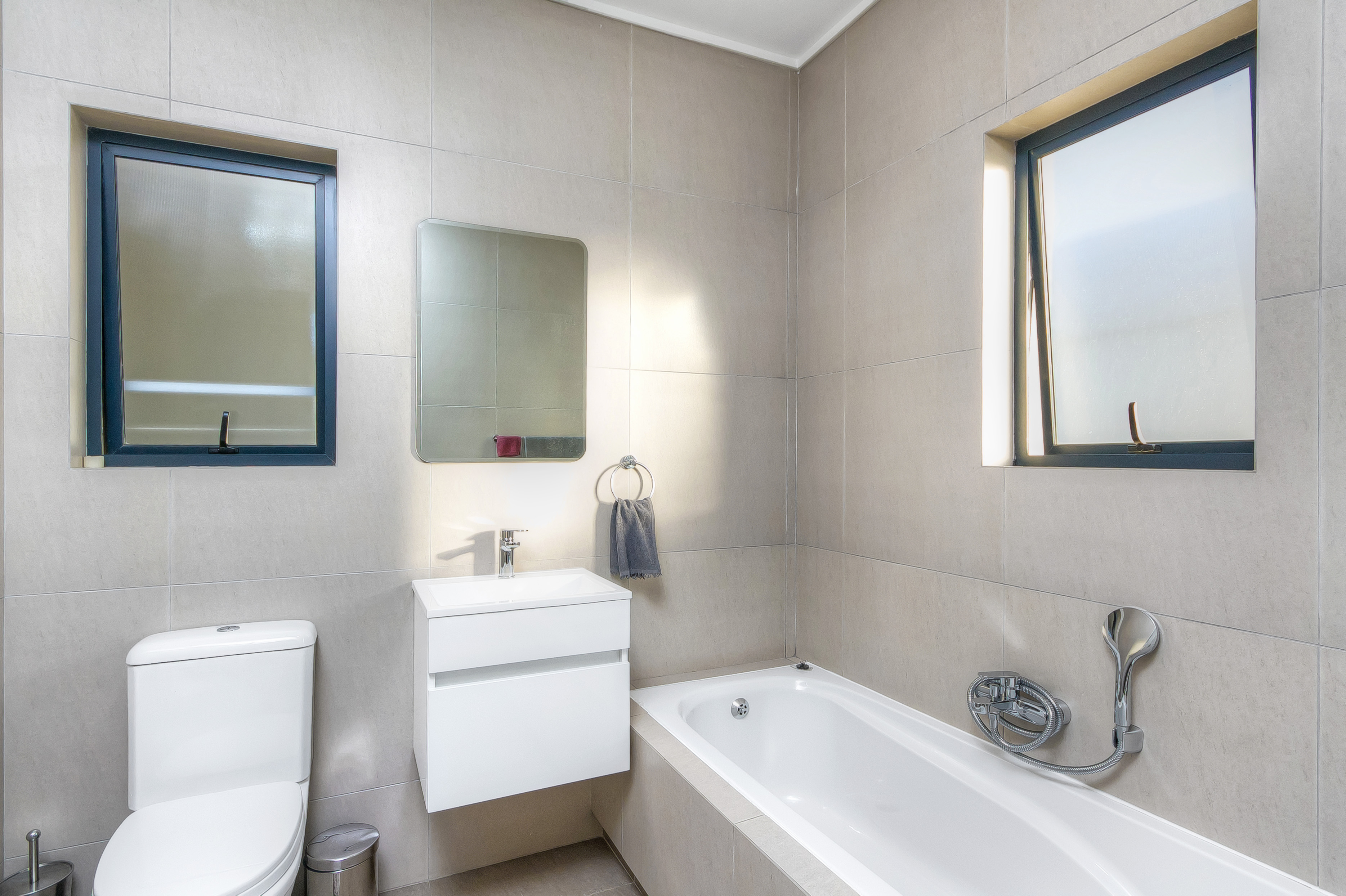The master bedroom is a tranquil retreat, featuring ample built-in cupboards and a stylish en-suite bathroom. The second bedroom is equally well-appointed, with access to a beautifully finished full second bathroom – ideal for guests or family.