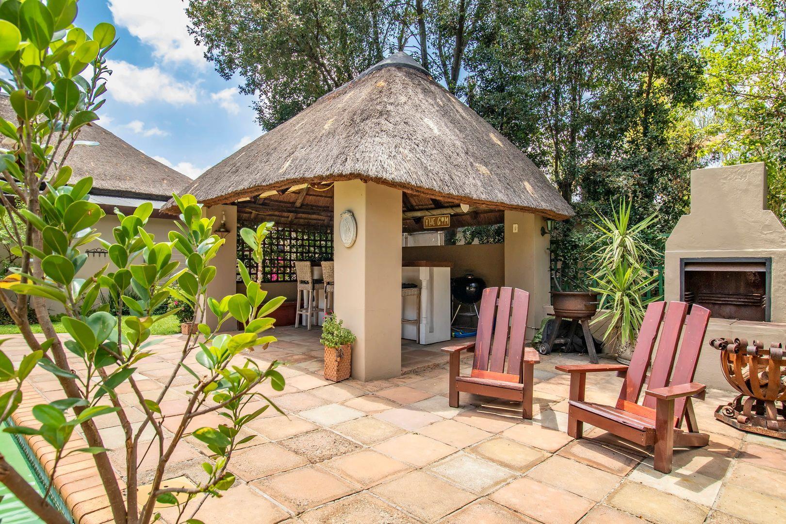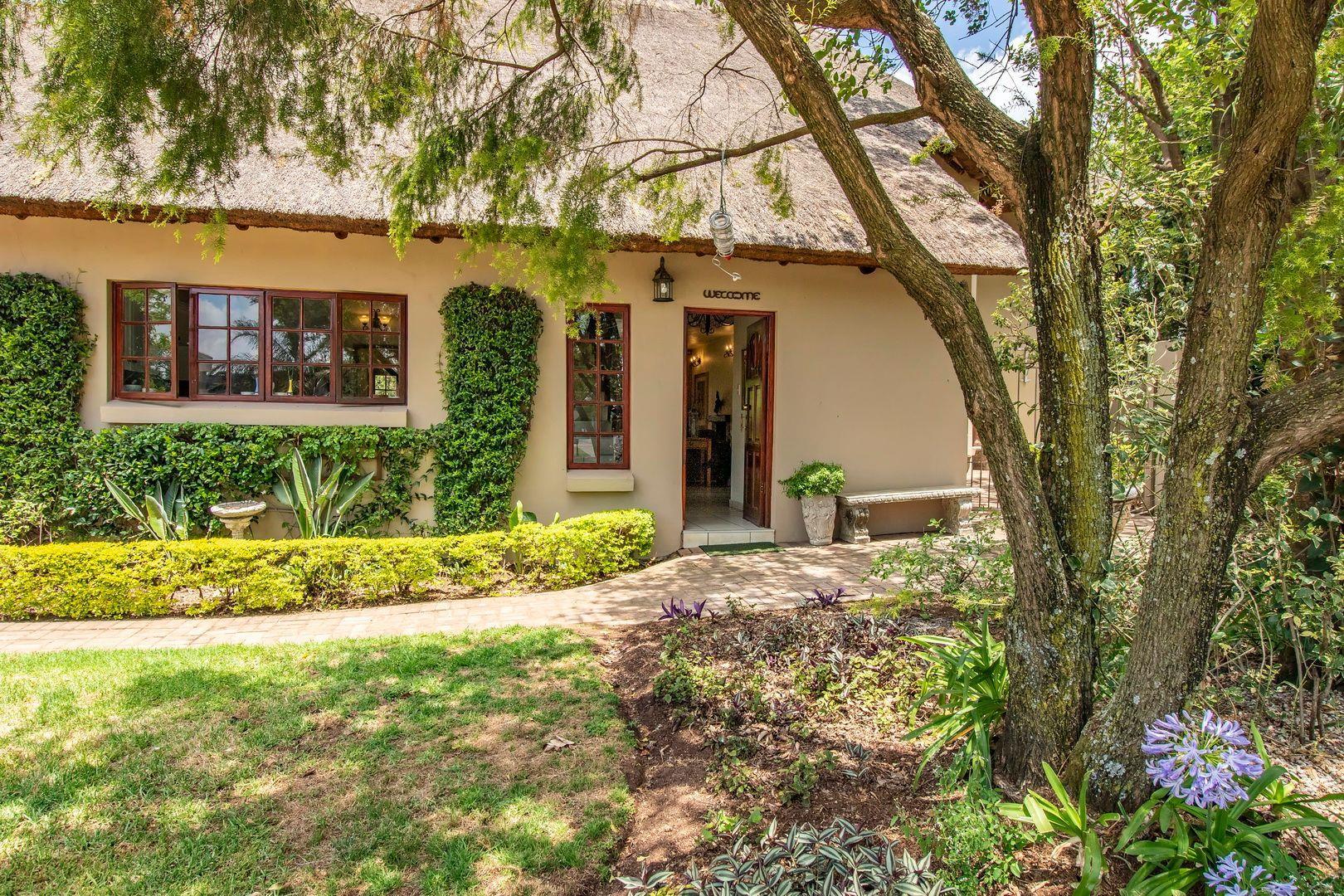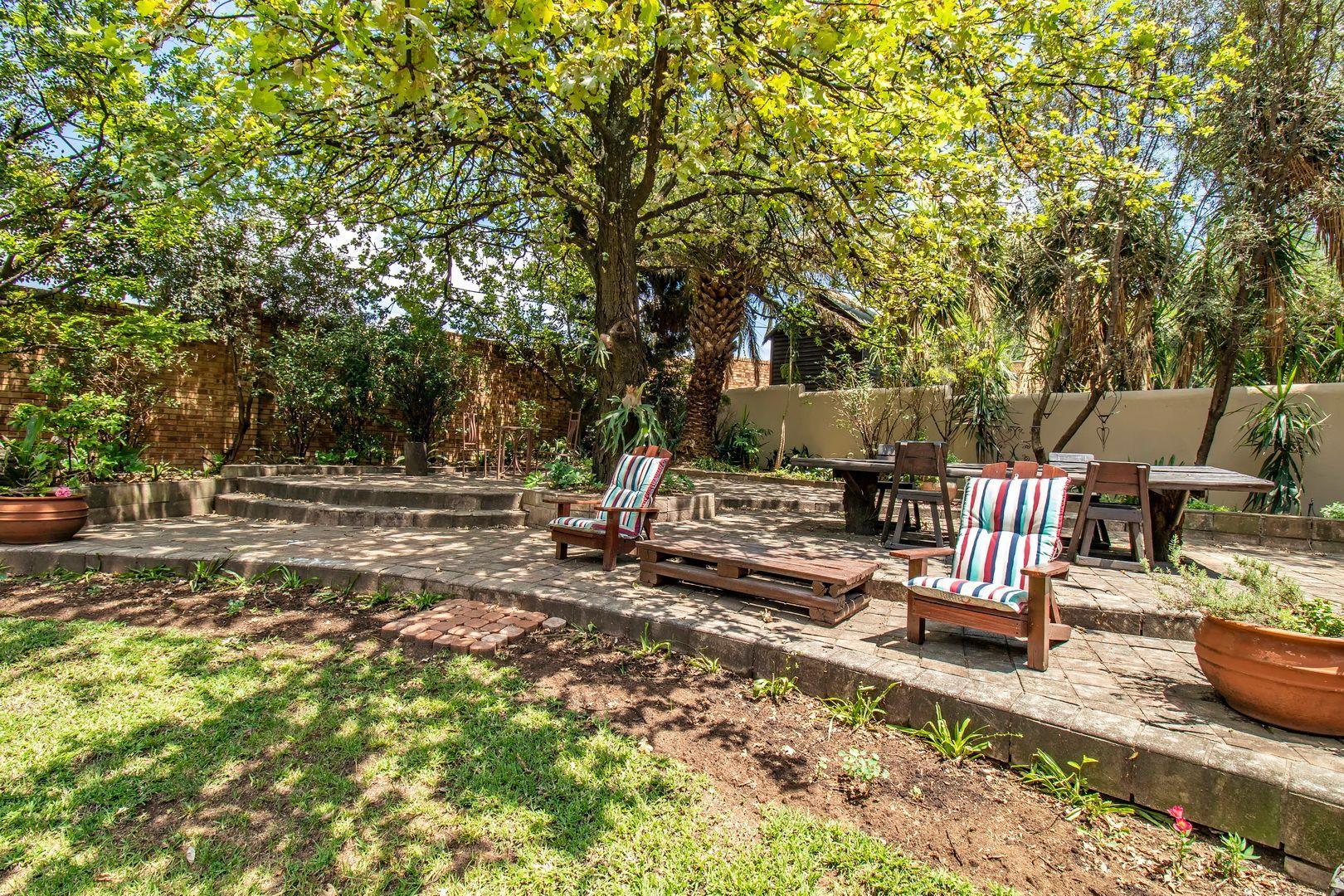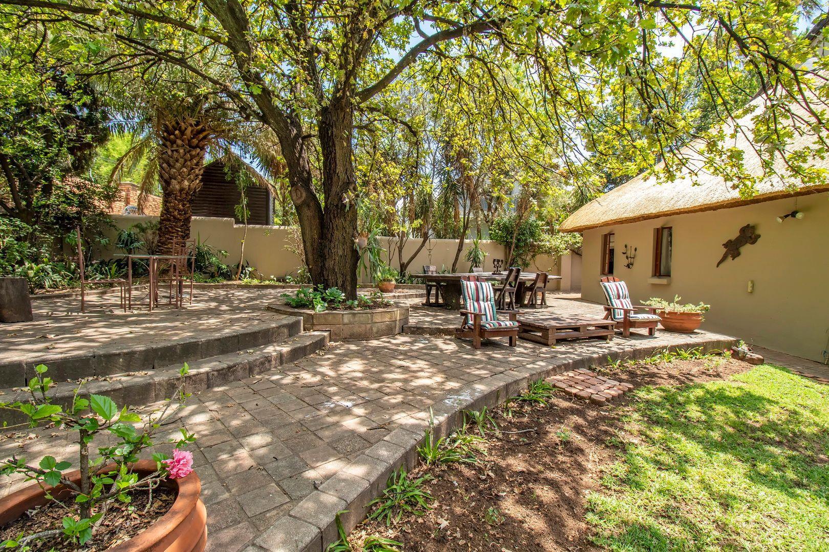 The garden is whimsical and gorgeous and contains one of the biggest Oak trees in Kyalami Estates.
