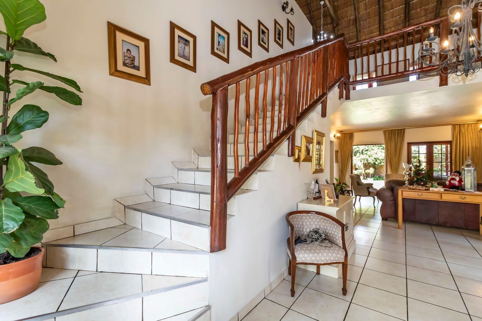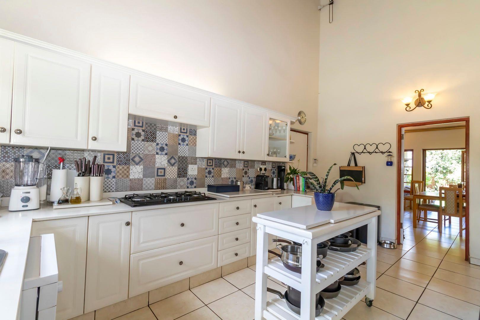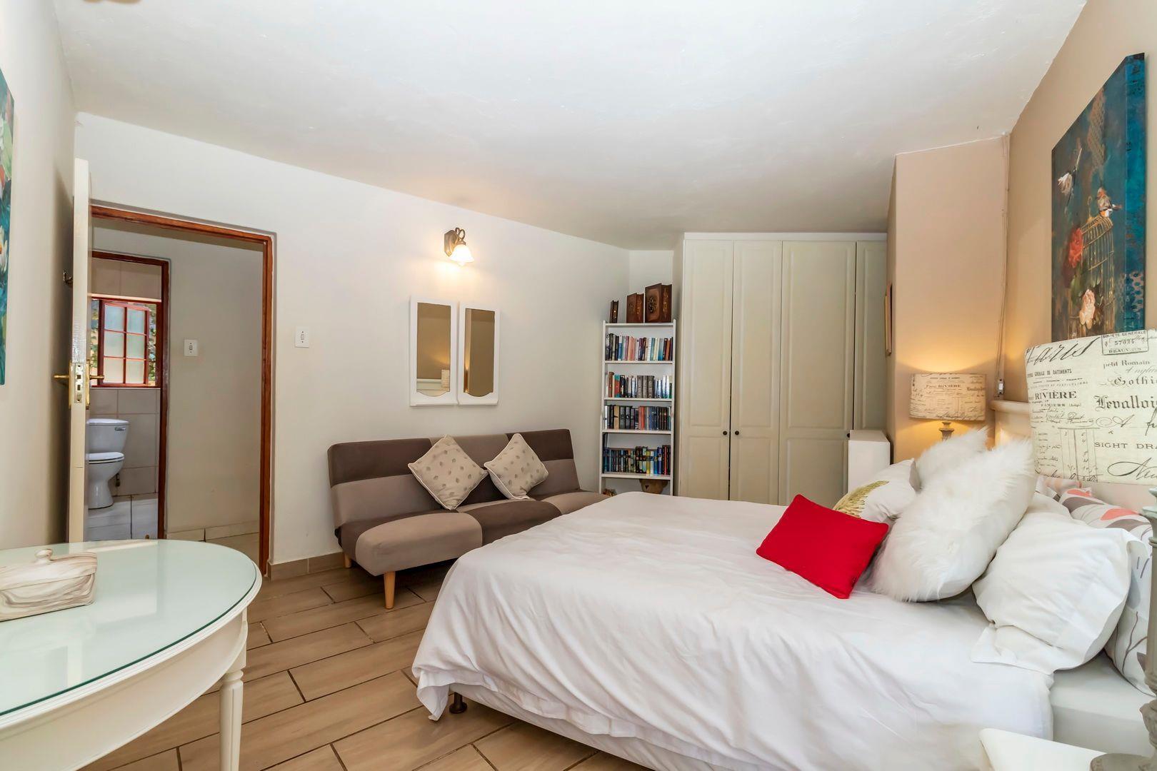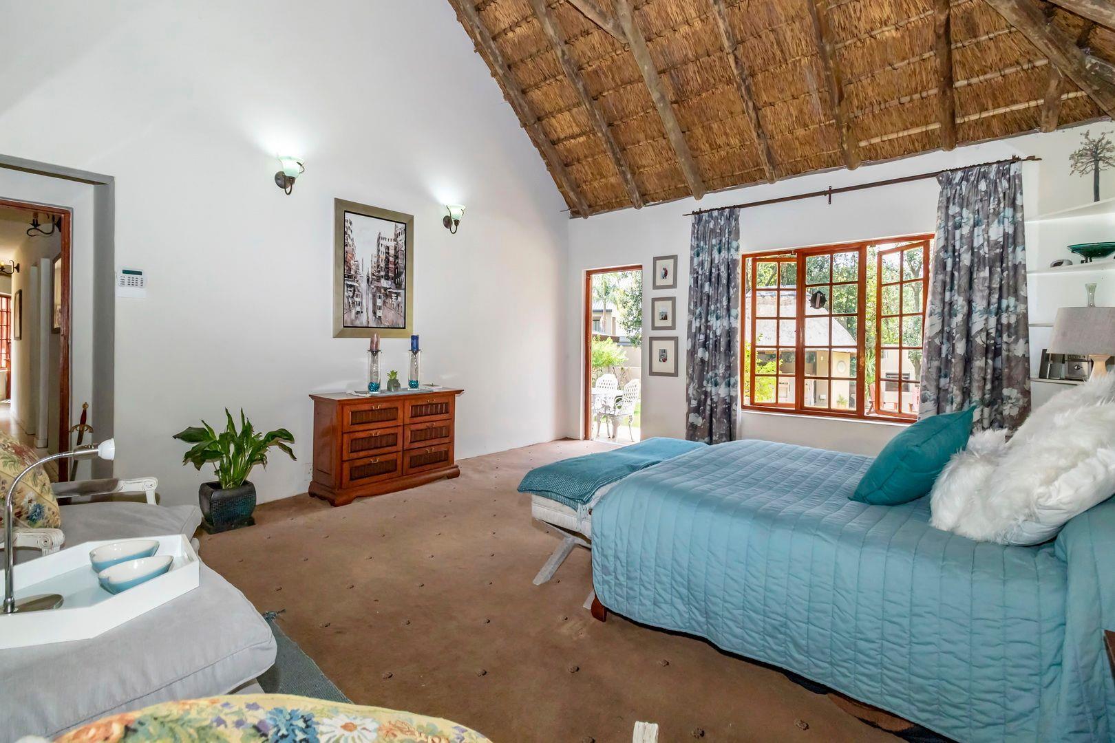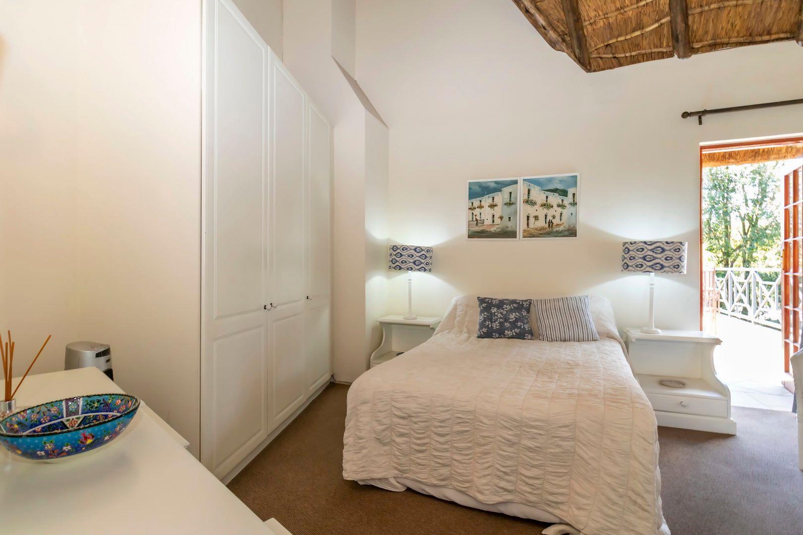 The garden is whimsical and gorgeous and contains one of the biggest Oak trees in Kyalami Estates.