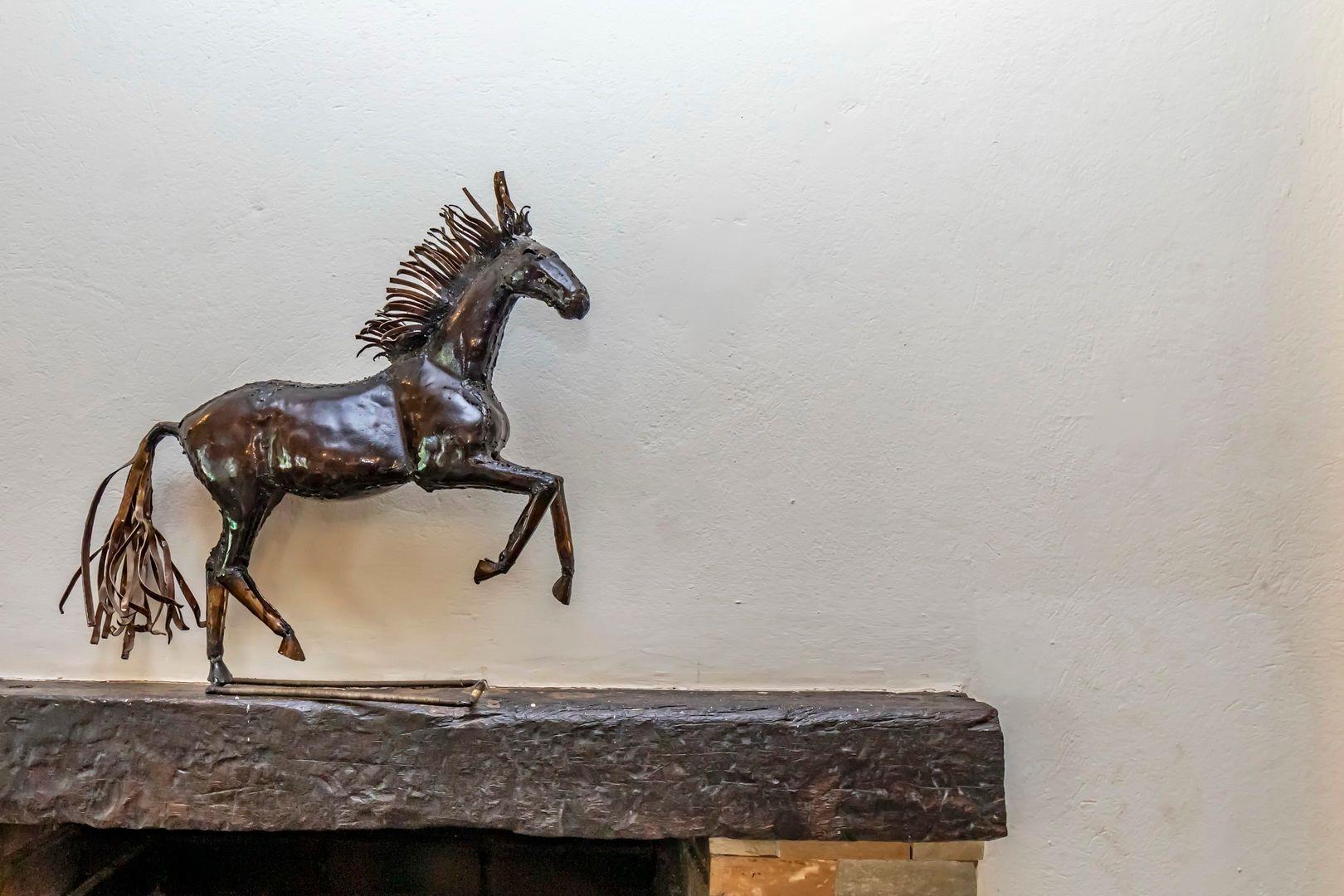 The welcoming entrance leads to an open plan lounge with wooden fireplace, and dining room. These areas both open onto a large patio, entertainment area and sparkling pool.
