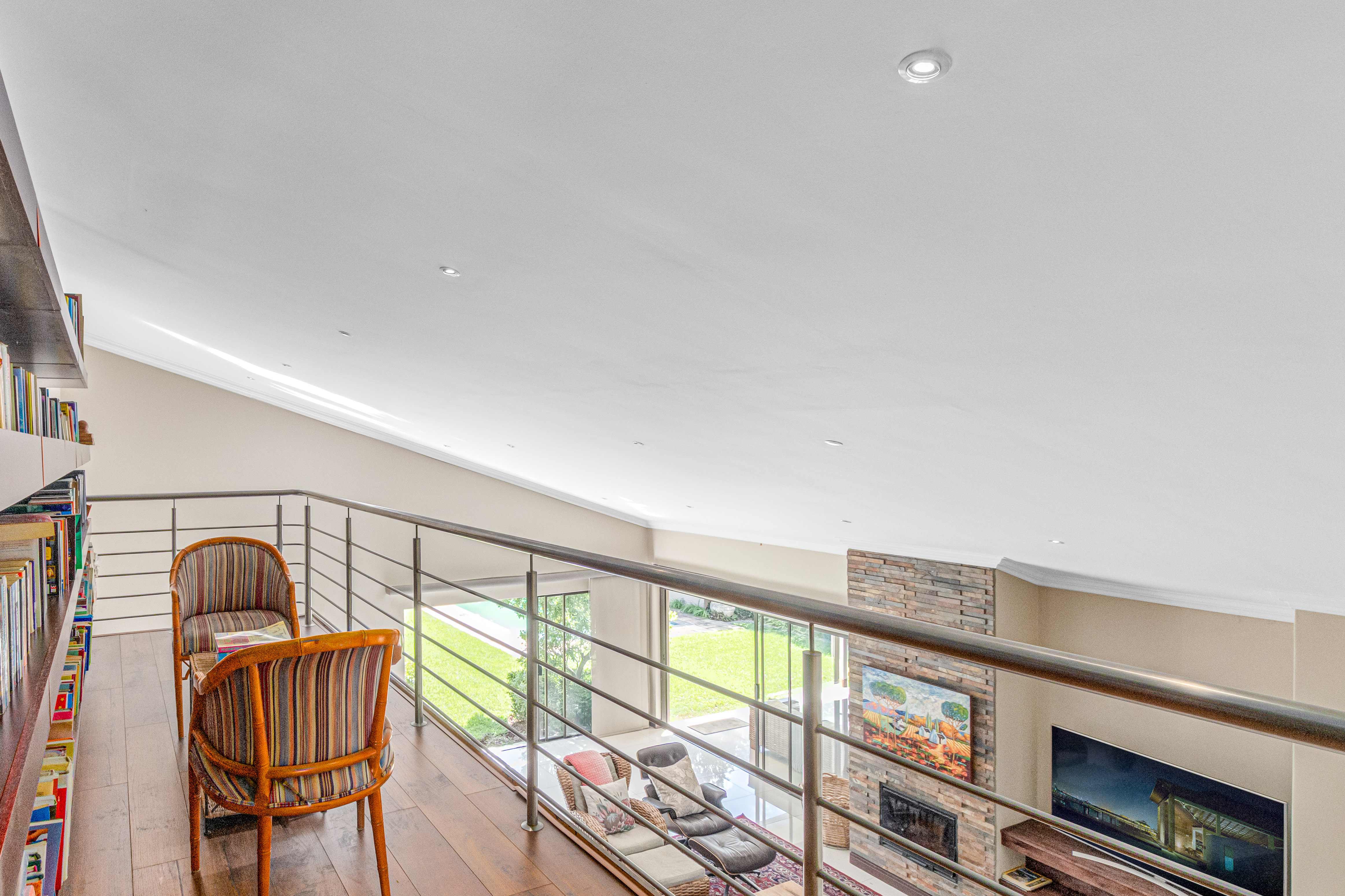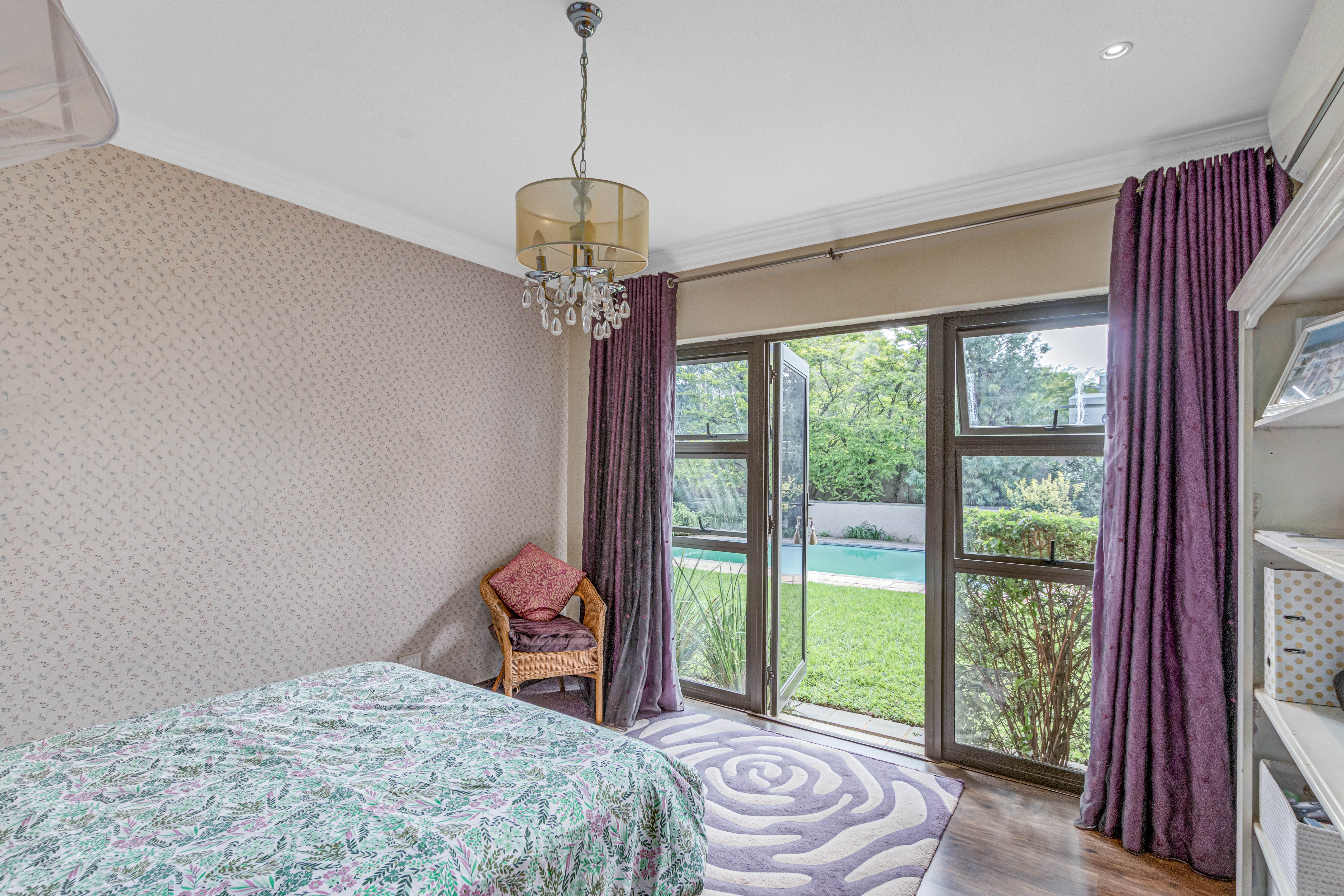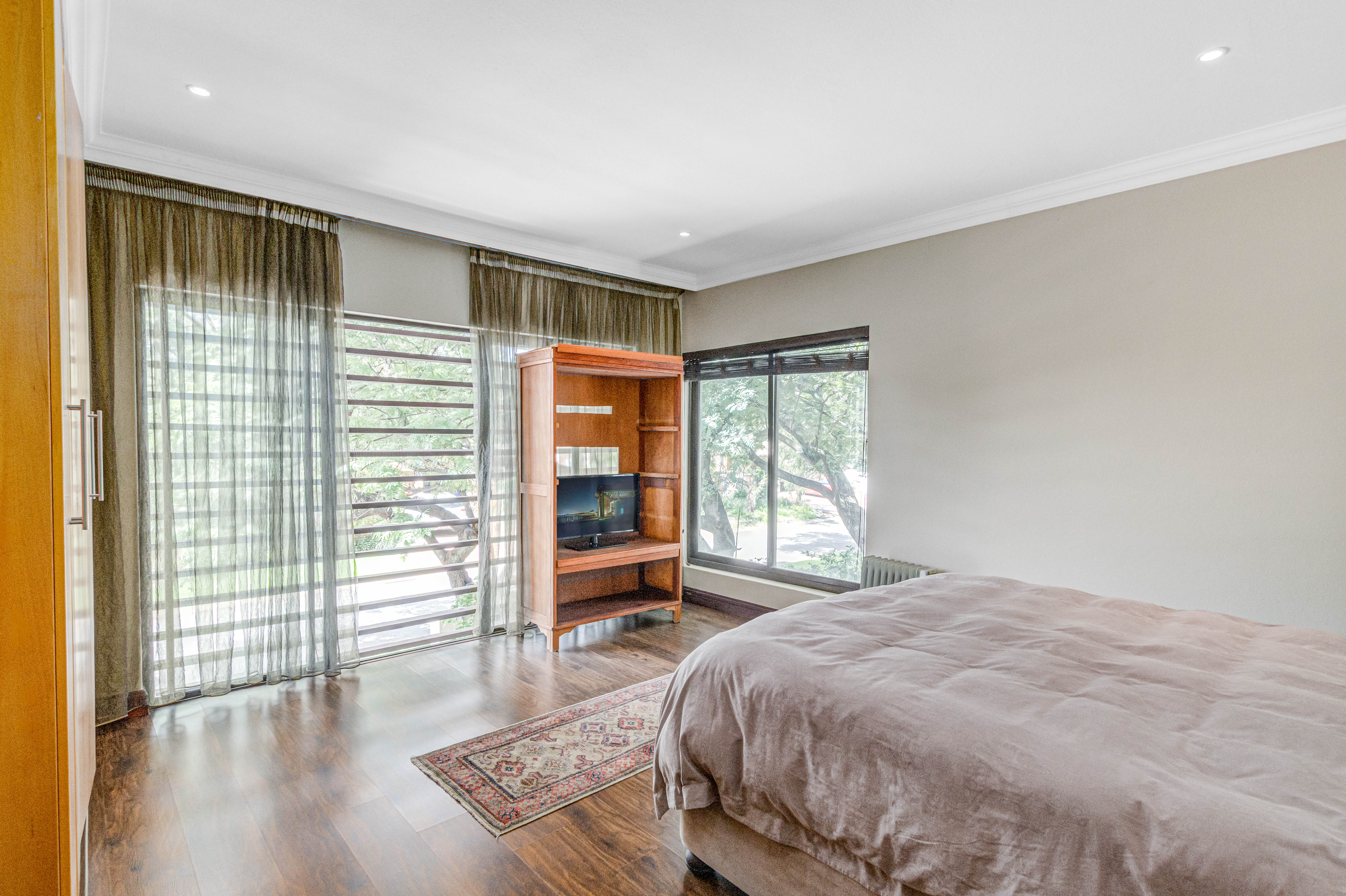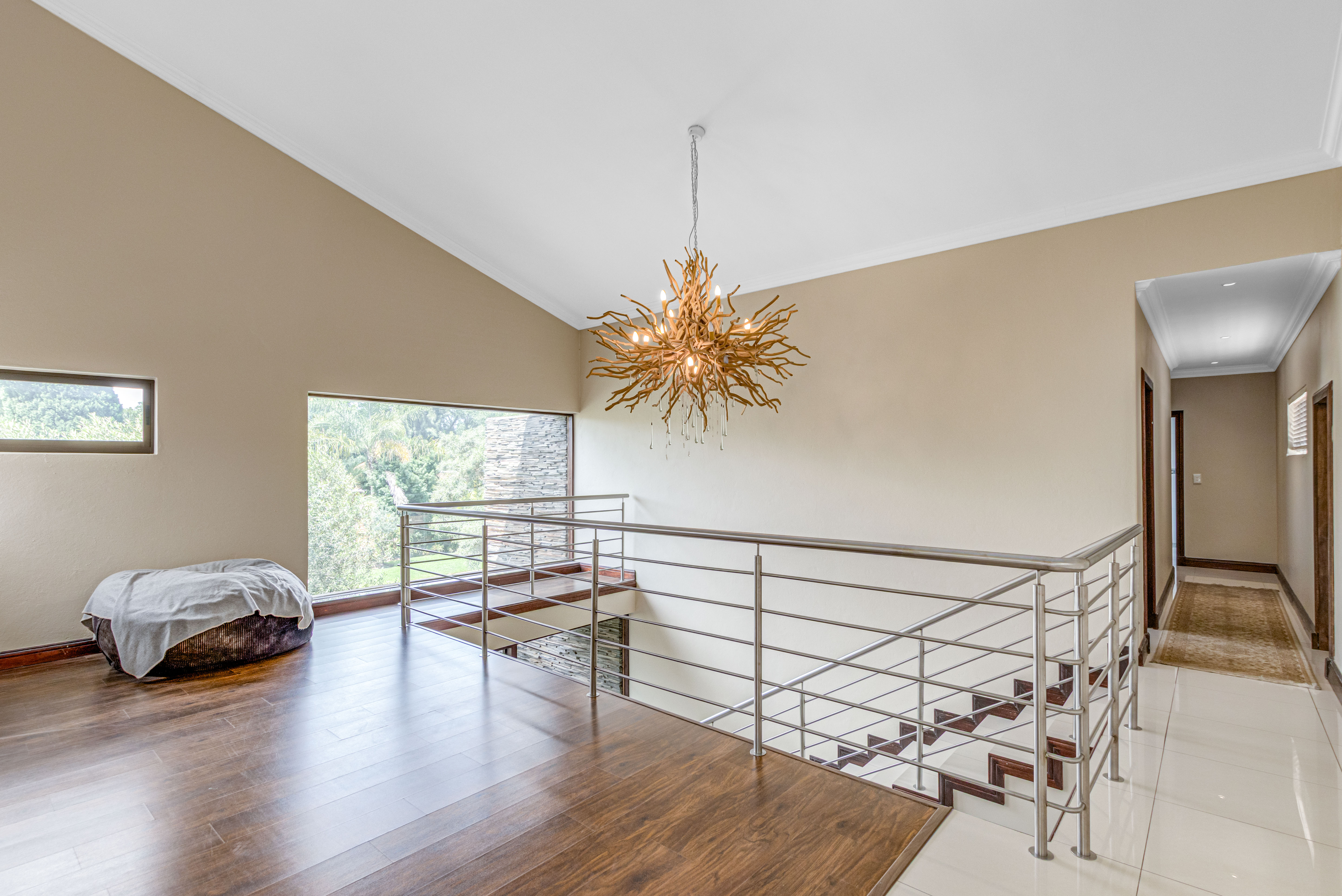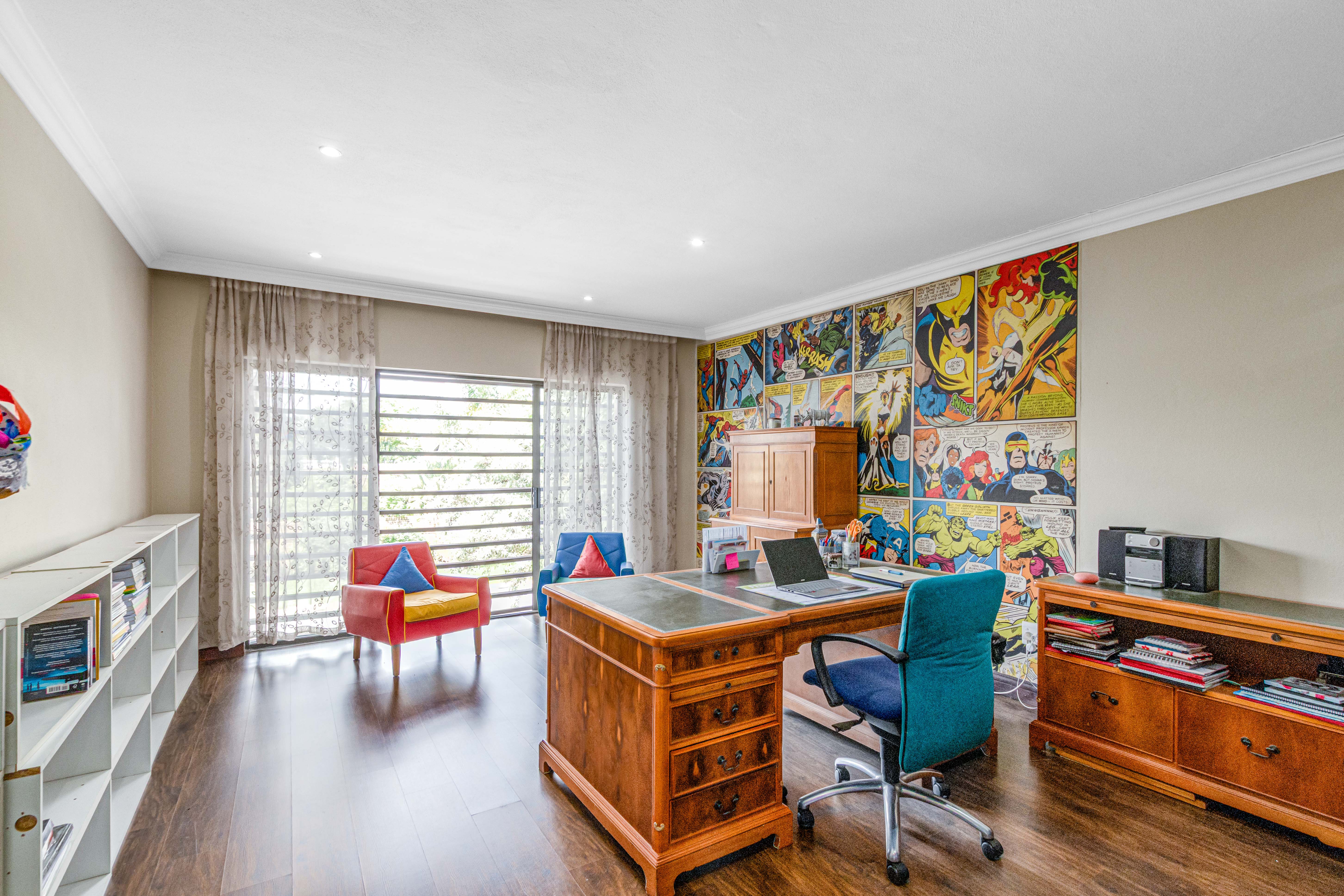 Key features: JOJO Water Tanks with pump, solar geyser, aircons, storeroom under staircase, outdoor shower in main bedroom + large wardrobe, well appointed guest toilet, the 3 bedrooms downstairs all open to the beautiful garden, wine cellar, miele electric stove/oven with extractor fan, granite countertops and prep bowl basin, spacious driveway with 3 garages, parking under cover for trailer, stainless steel balustrade, aluminium windows/doors, laminated flooring, tiled roof, linen BIC, outside courtyard with separate gate, upstairs west balcony with cover, staff accommodation, 3x geysers, wendy house, outside wash base, council approved plans in order, prepaid electricity.