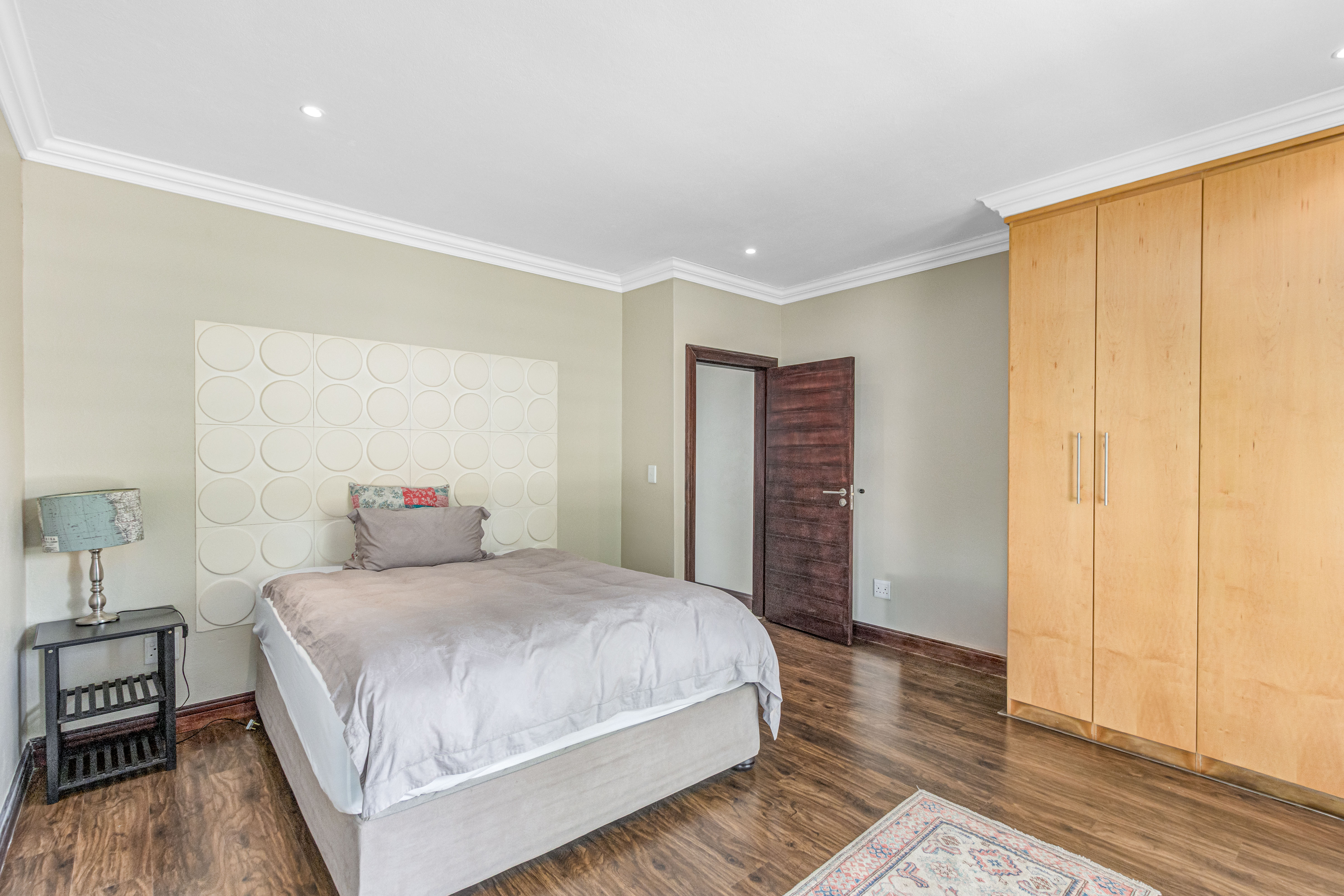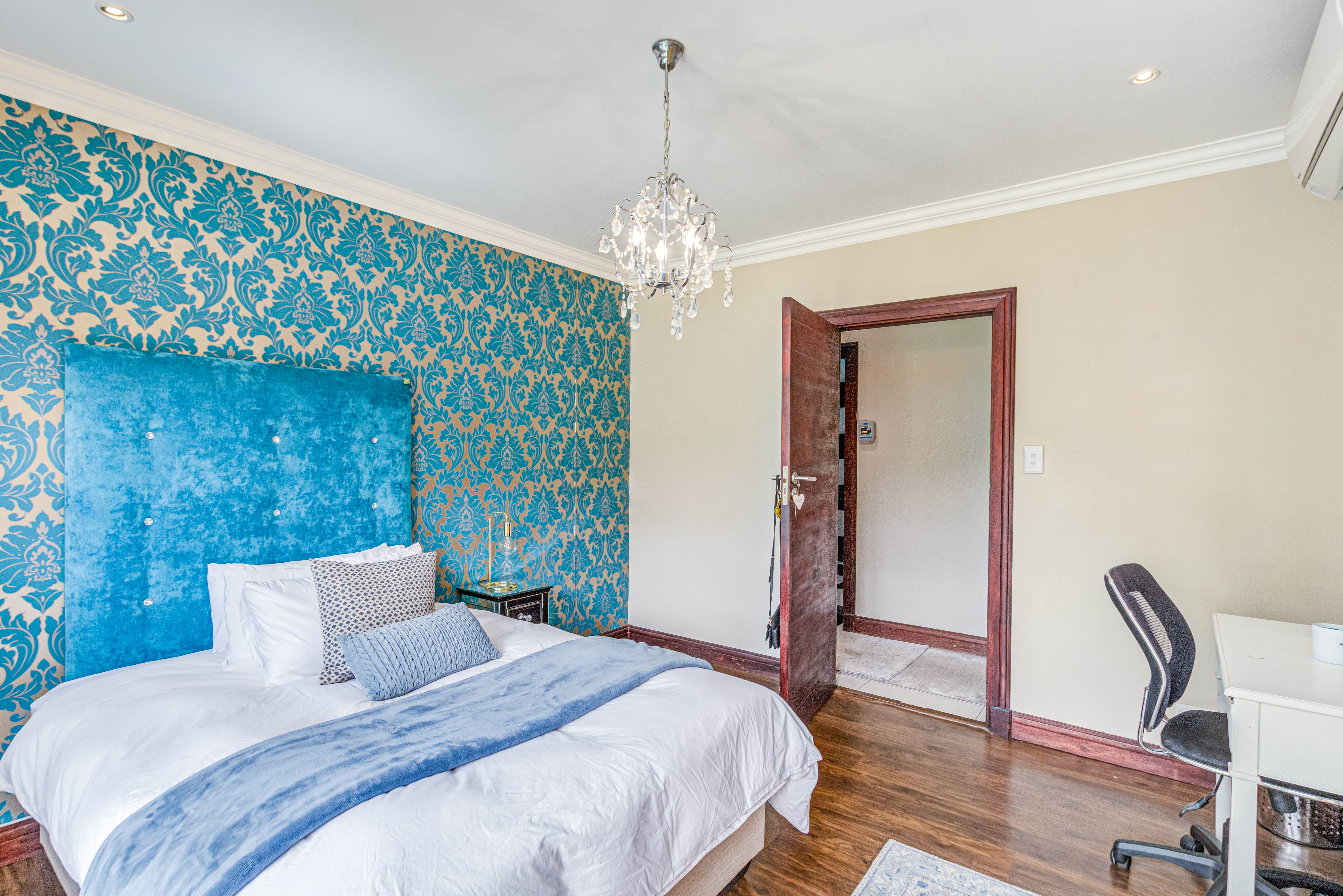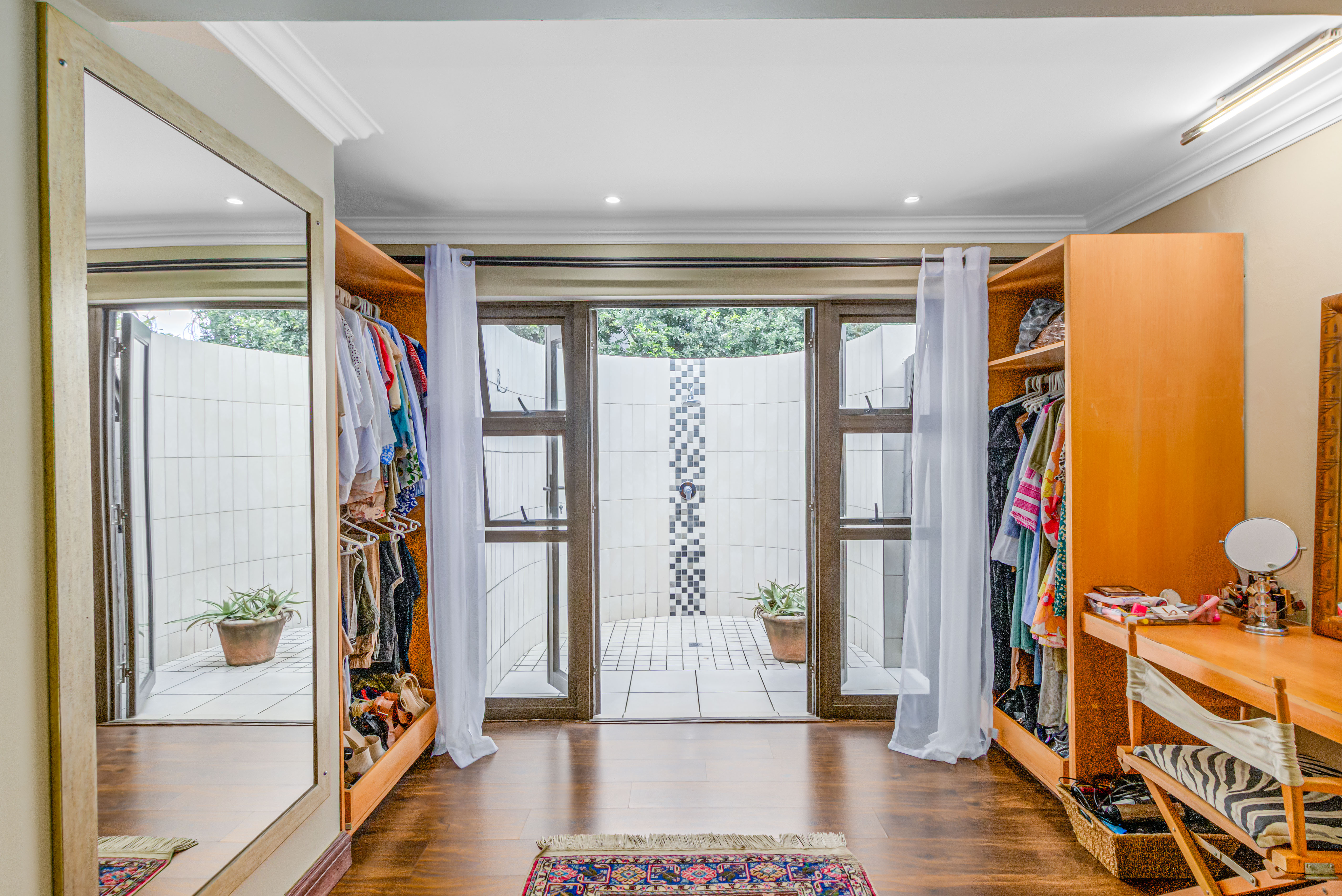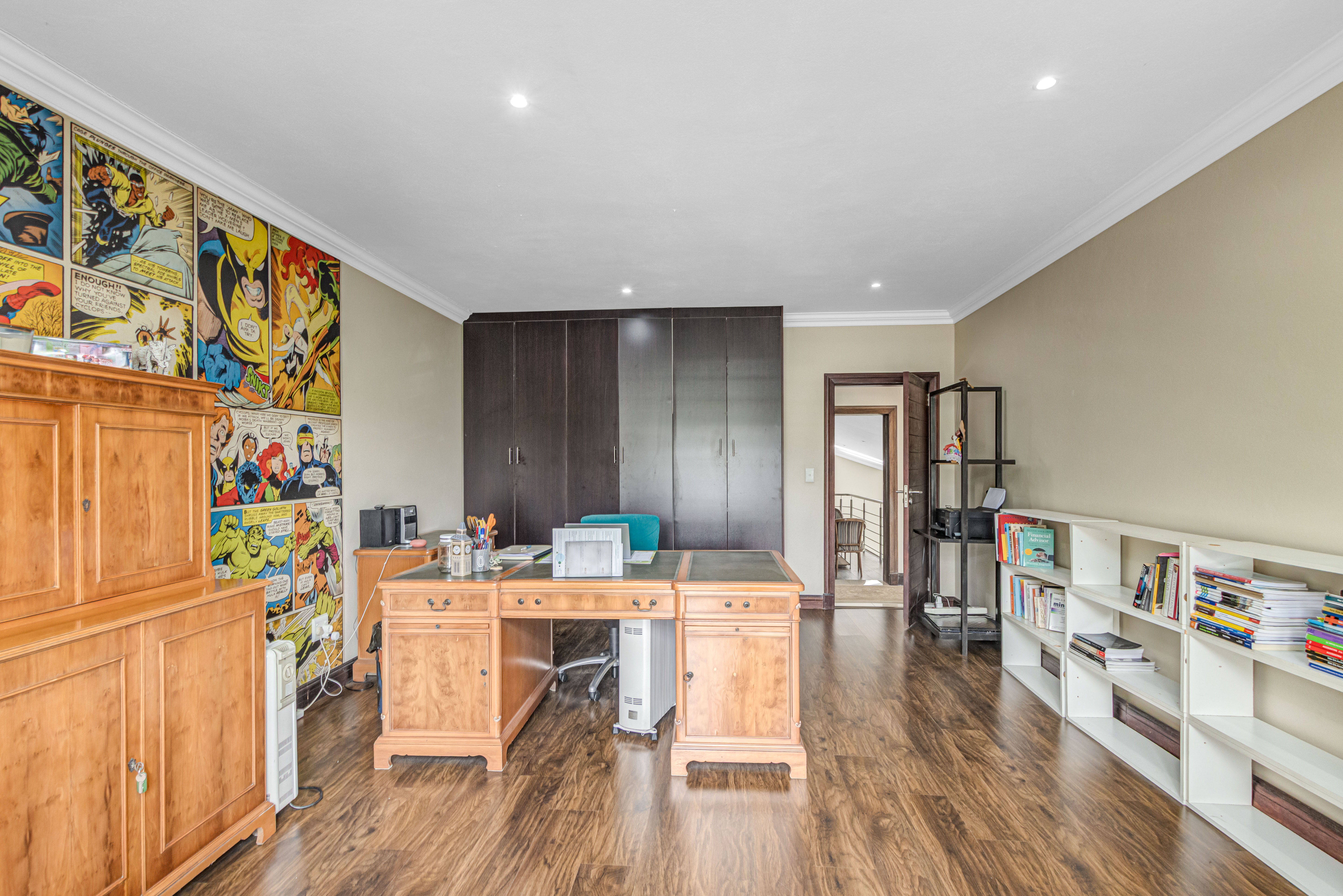 Key features: JOJO Water Tanks with pump, solar geyser, aircons, storeroom under staircase, outdoor shower in main bedroom + large wardrobe, well appointed guest toilet, the 3 bedrooms downstairs all open to the beautiful garden, wine cellar, miele electric stove/oven with extractor fan, granite countertops and prep bowl basin, spacious driveway with 3 garages, parking under cover for trailer, stainless steel balustrade, aluminium windows/doors, laminated flooring, tiled roof, linen BIC, outside courtyard with separate gate, upstairs west balcony with cover, staff accommodation, 3x geysers, wendy house, outside wash base, council approved plans in order, prepaid electricity.