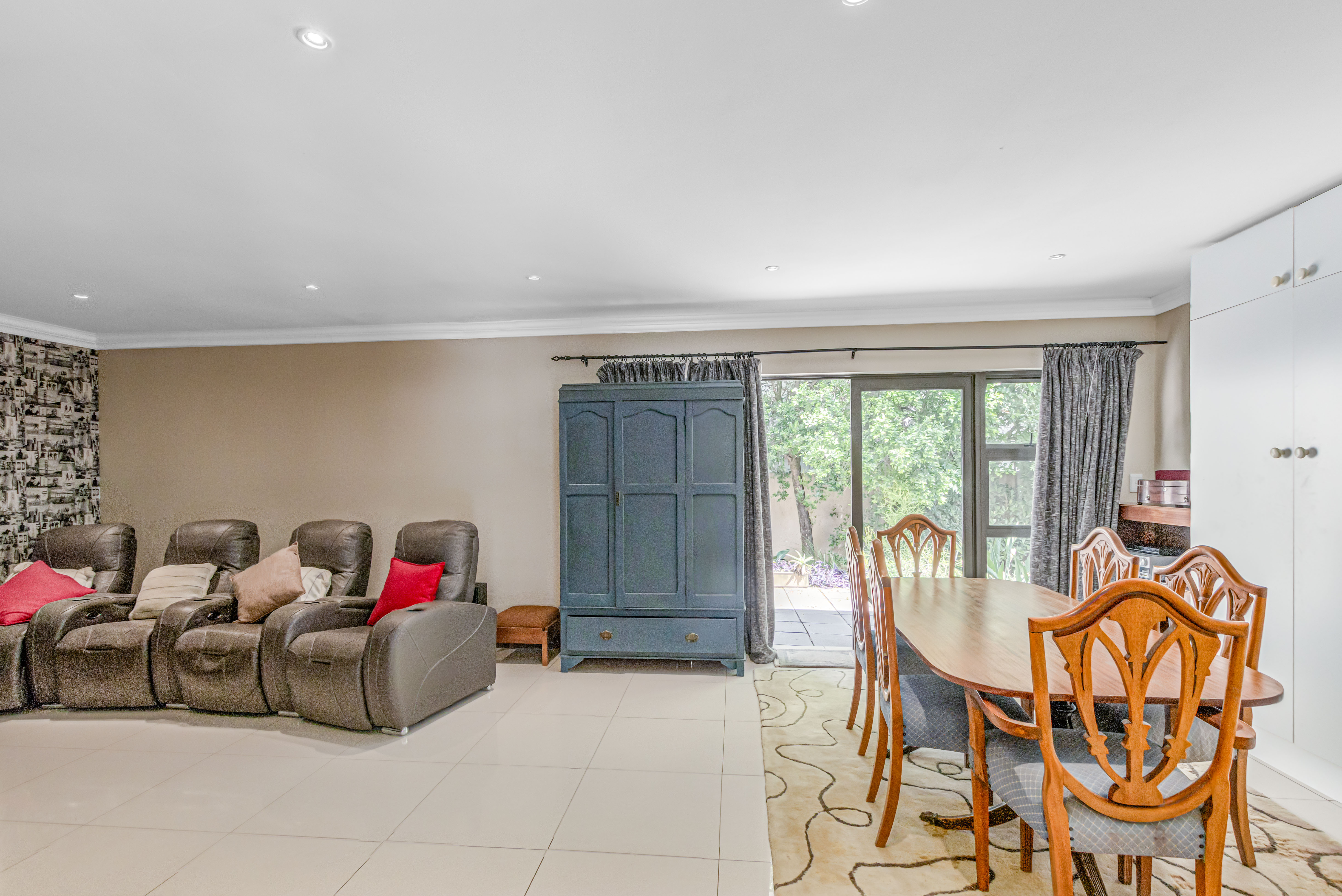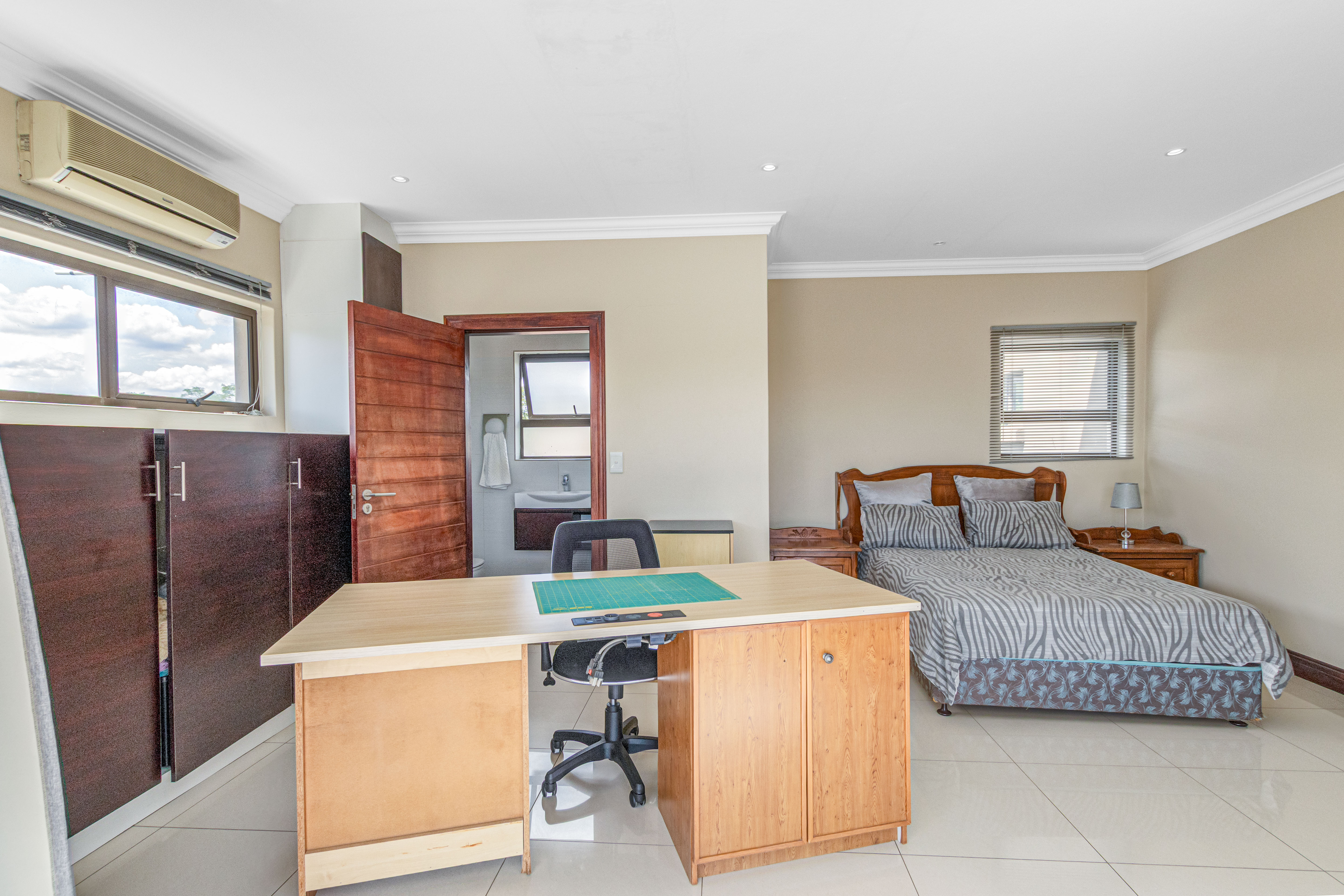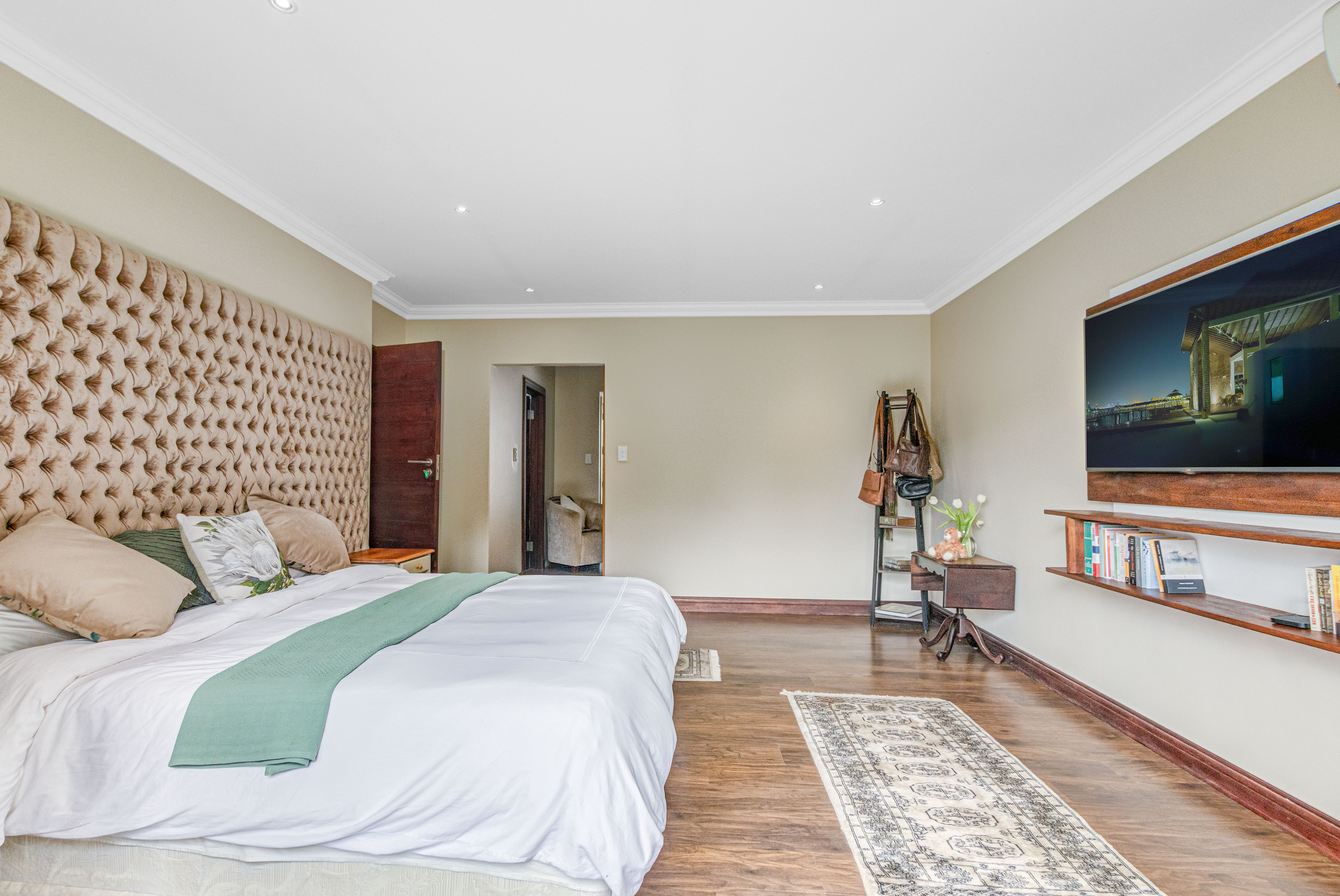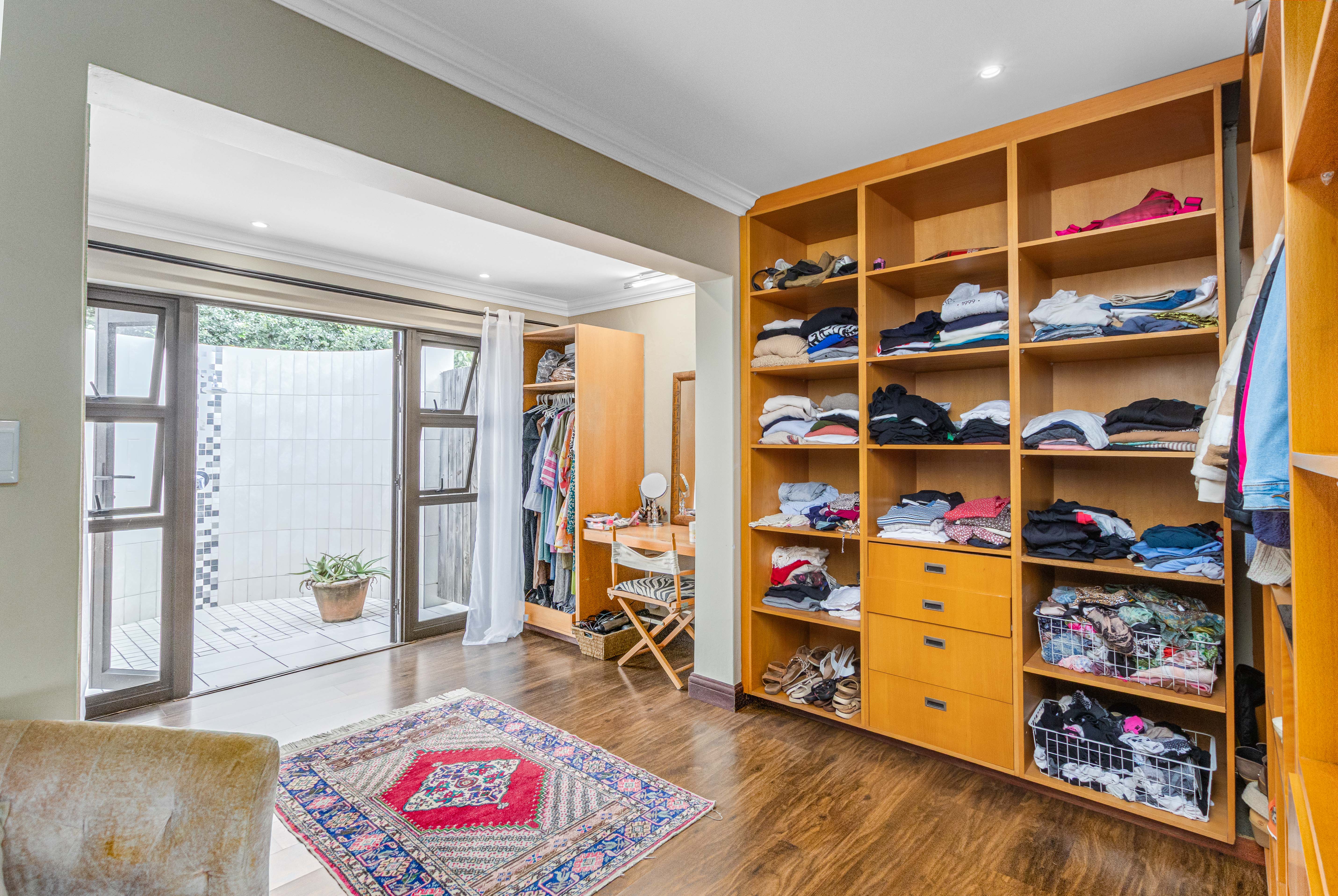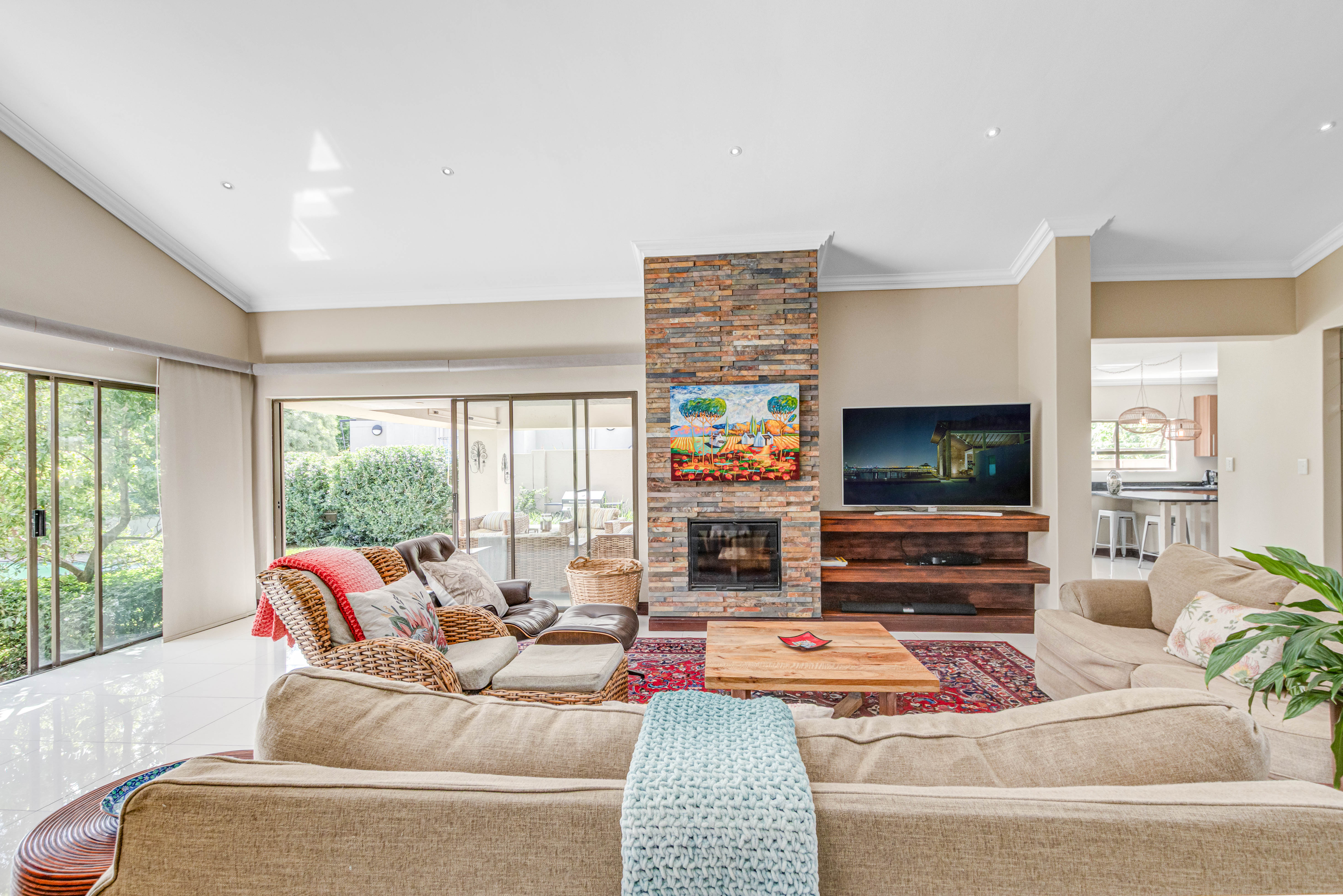 Key features: JOJO Water Tanks with pump, solar geyser, aircons, storeroom under staircase, outdoor shower in main bedroom + large wardrobe, well appointed guest toilet, the 3 bedrooms downstairs all open to the beautiful garden, wine cellar, miele electric stove/oven with extractor fan, granite countertops and prep bowl basin, spacious driveway with 3 garages, parking under cover for trailer, stainless steel balustrade, aluminium windows/doors, laminated flooring, tiled roof, linen BIC, outside courtyard with separate gate, upstairs west balcony with cover, staff accommodation, 3x geysers, wendy house, outside wash base, council approved plans in order, prepaid electricity.