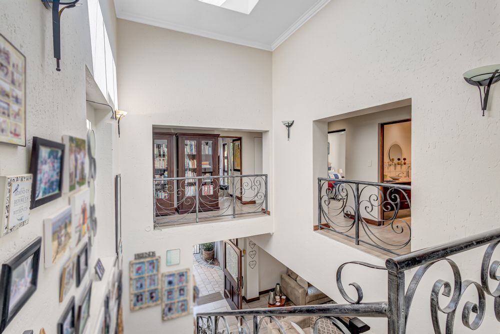 Discover a home designed for luxurious living and effortless entertaining. From the moment you enter, the double-volume foyer sets a grand tone, complemented by a discreet guest toilet. The expansive open-plan TV and dining rooms invite relaxation and gathering, extending to a superb enclosed patio. This versatile space, complete with a built-in braai and a warm wood-burning fireplace, is perfect for year-round enjoyment. An elegant built-in bar area with its own private balcony offers an ideal spot for evening drinks. The open-plan kitchen boasts granite countertops, a charming middle island with a breakfast area, a separate scullery (with ample space for appliances), and a spacious pantry. Outside, an established garden with a pool awaits.