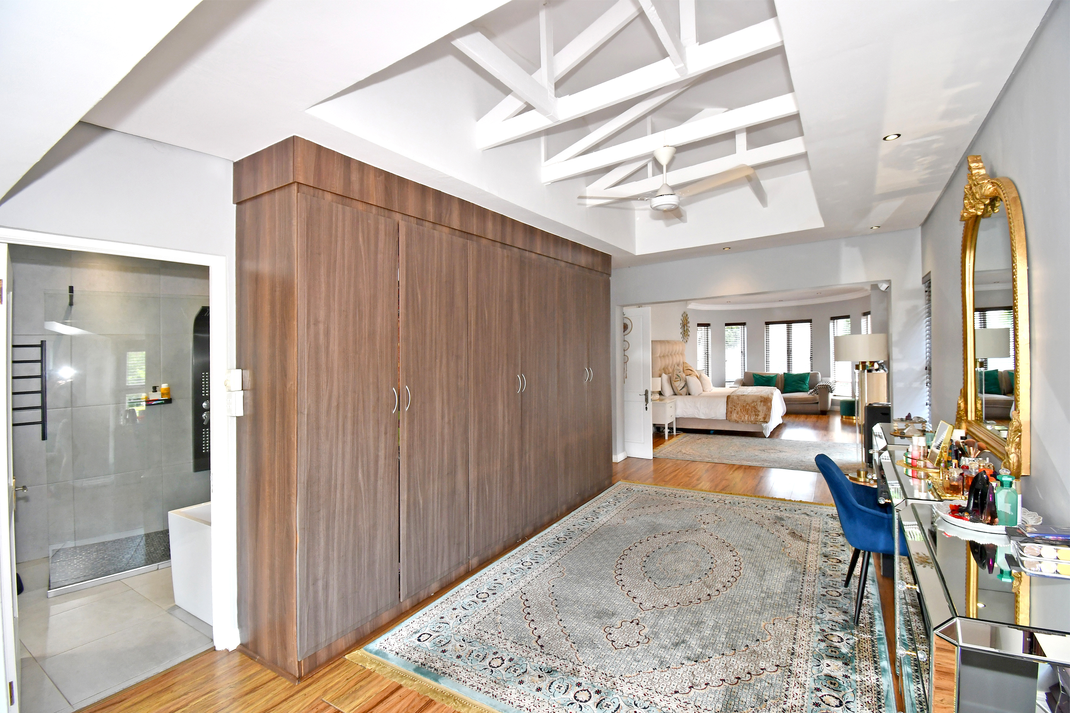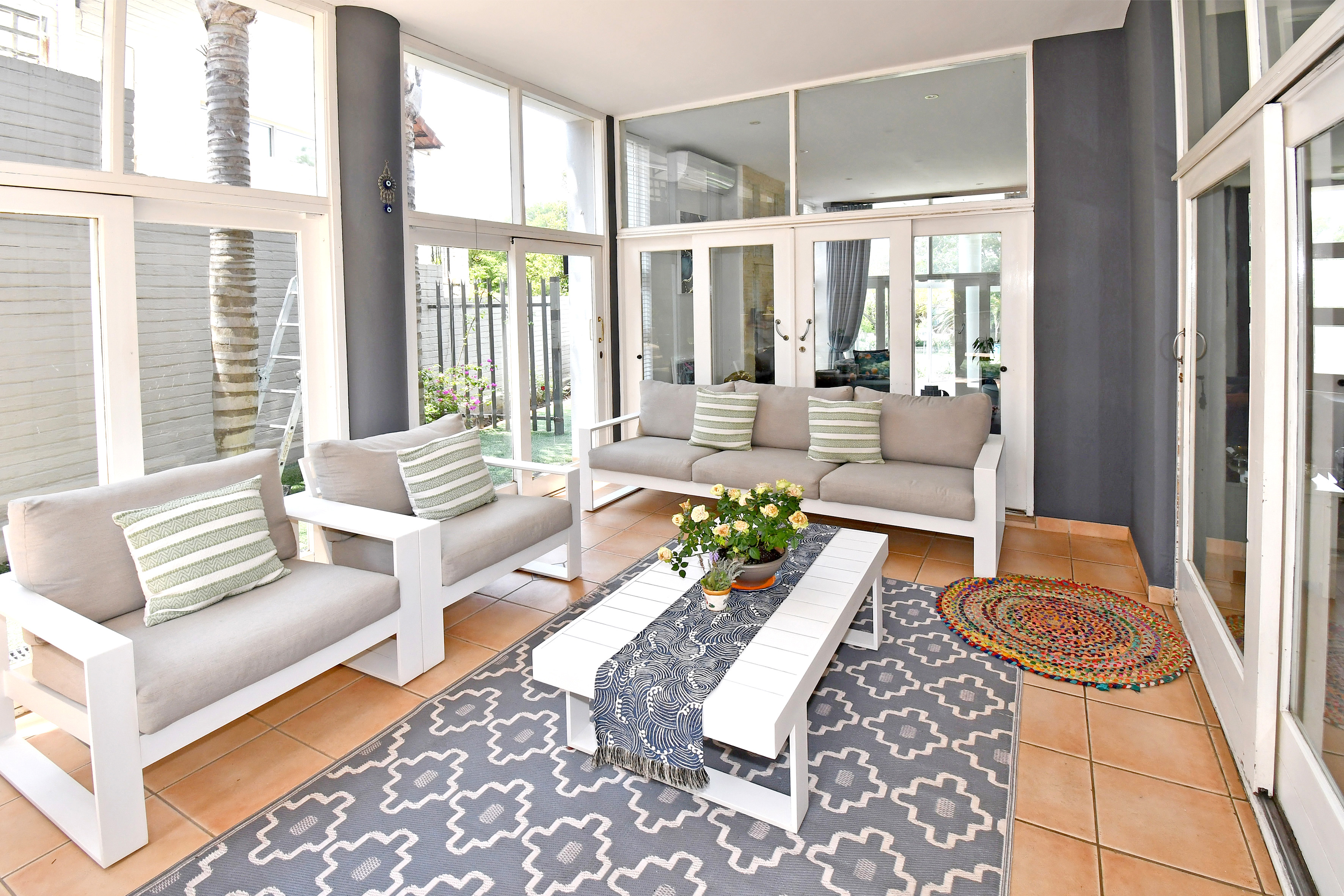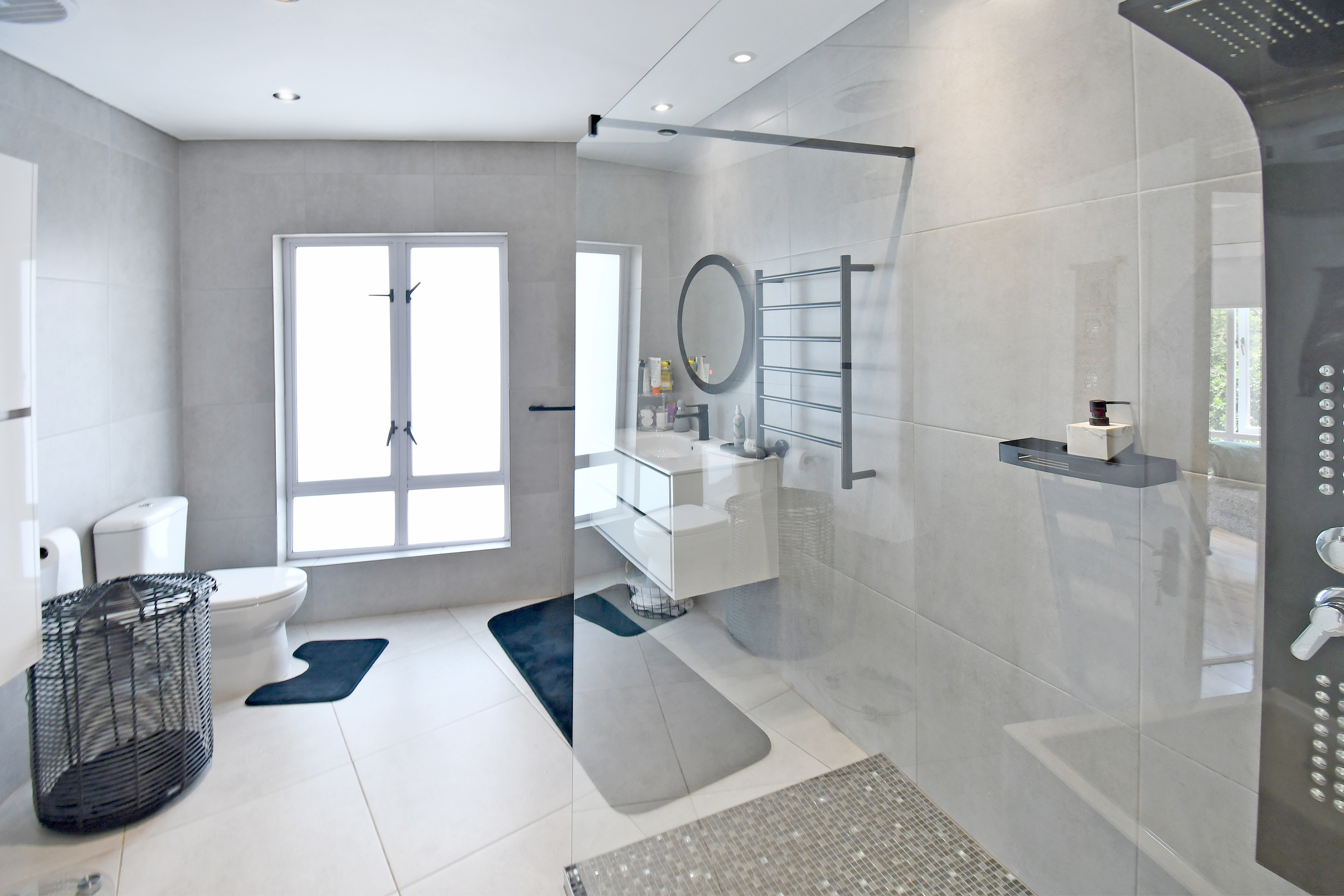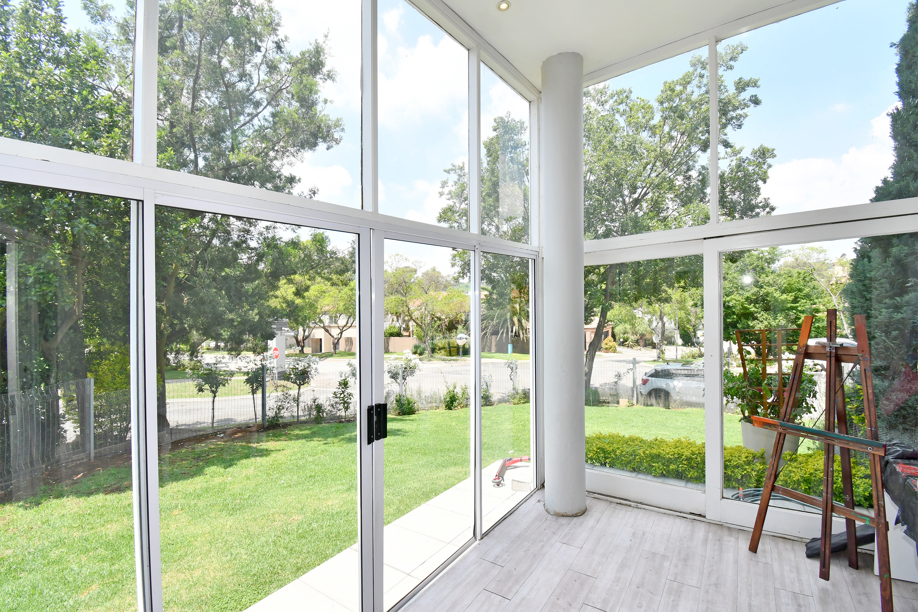 Upstairs is enveloped with light and comfort with 4 deluxe-size bedrooms and 3 bathrooms (2 en suite) as well as a third-story viewing balcony with 360-degree views of Johannesburg - sip on a cocktail while you watch the sunset! The grand master suite is complete with a large walk-in closet, dressing room, space for a private lounge and newly renovated en suite bathroom.